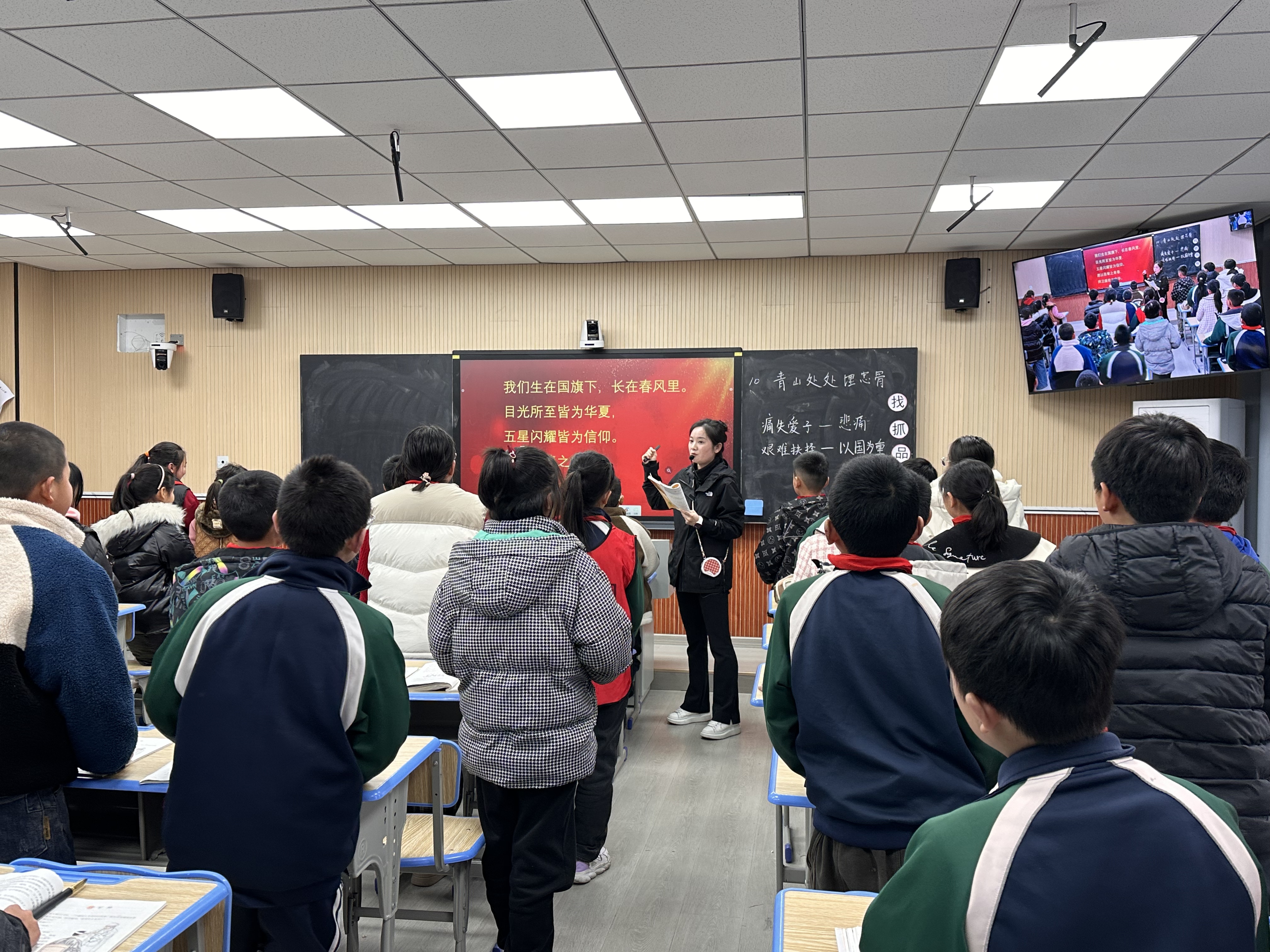 课上,老师们紧扣“立德树人”目标,创新设计思政切入点:语文课堂以“红色经典”为纽带,通过《黄继光》等课文诵读,引导学生感悟家国情怀;数学课堂聚焦“数与代数”板块,借助数据对比分析社会现象,在计算推理中渗透爱国意识;美术课绘出“微生世界”,音乐课唱响爱国旋律,科学课以AI互动培养创新思维……各学科巧妙提炼思政元素,让课堂既有深度又有温度。