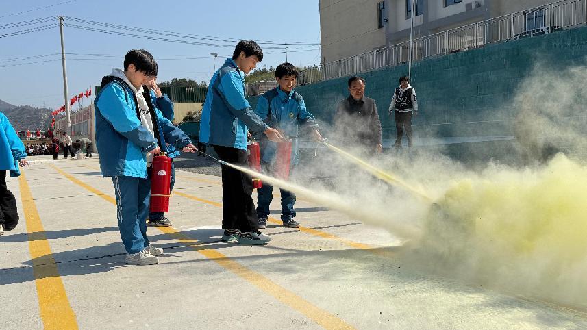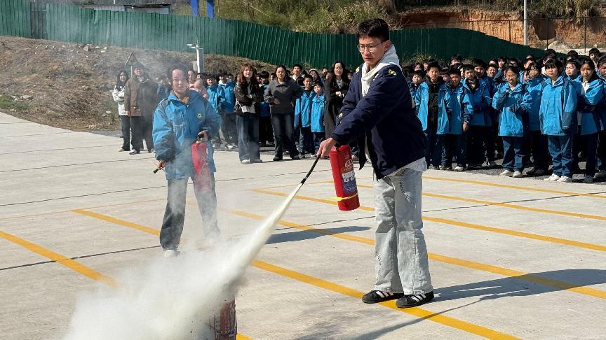 此外,学校安排专业教师开展灭火器使用专项培训,现场讲解干粉灭火器的适用场景及“提、拔、握、压”四步操作要领,并模拟火情进行示范。随后,教师代表率先实操,指导学生分批次体验灭火过程。学校将以此次演练为契机,进一步优化应急预案,定期排查安全隐患,为全校师生安全保驾护航。