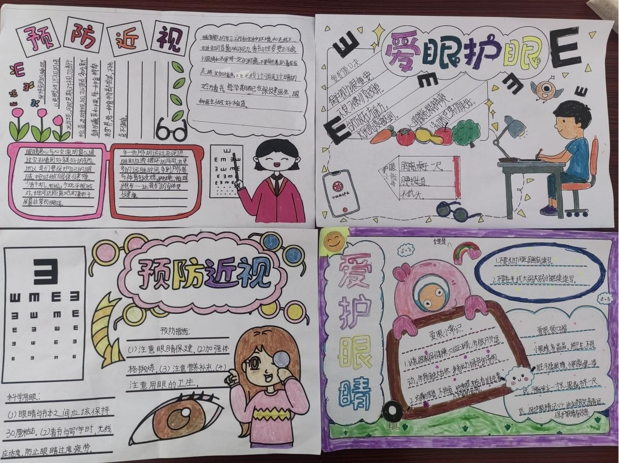 手抄报比赛则成为了本次活动的一大亮点,同学们积极参与,精心制作了一幅幅内容丰富、设计精美的手抄报。这些手抄报不仅展示了学生们对近视防控知识的理解,更体现了他们对护眼行动的积极态度。