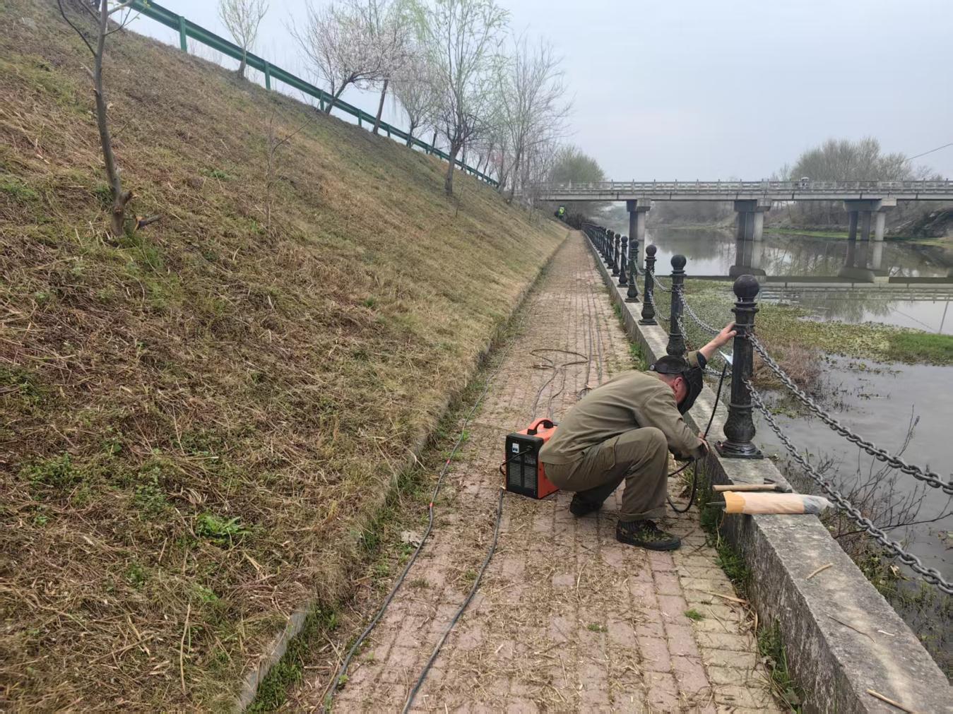 社区工作人员迅速行动,组织专业维修人员,对辖区内的河道护栏进行全面排查和维修。在维修现场,维修人员利用专业工具,对松动、损坏的护栏进行加固和更换,确保每一处护栏都牢固可靠。