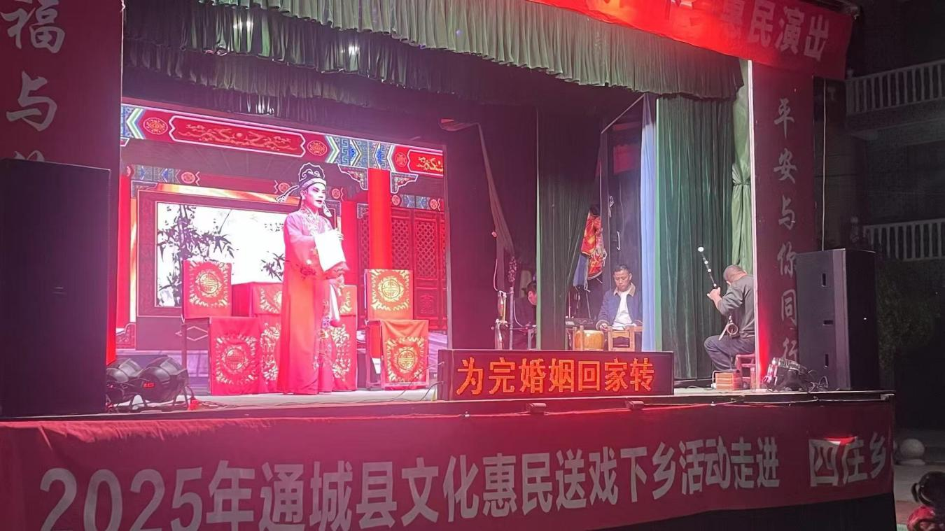 【通讯员 万宇】近日,通城县文旅局联合四庄乡新时代文明实践所开展文化下乡活动,为华家村、四庄村的村民们带来了一场精彩纷呈的戏剧盛宴,也让文明新风吹进了百姓心田。