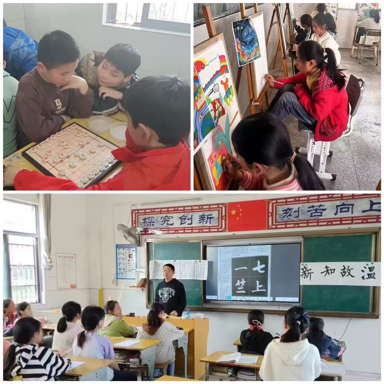 【通讯员 吴颖】为积极响应 “双减” 政策,丰富学生课余生活,促进学生全面发展,近日,通城县大坪乡下畈完小充分利用课后服务时间,开设绘画、书法、篮球等多个特色小组,涵盖棋艺、体育、艺术等多个领域,打造出形式多样、内容丰富的课后服务体系,为学生的健康成长和全面发展搭建了广阔平台。目前,这些特色活动已全面展开,深受学生喜爱。