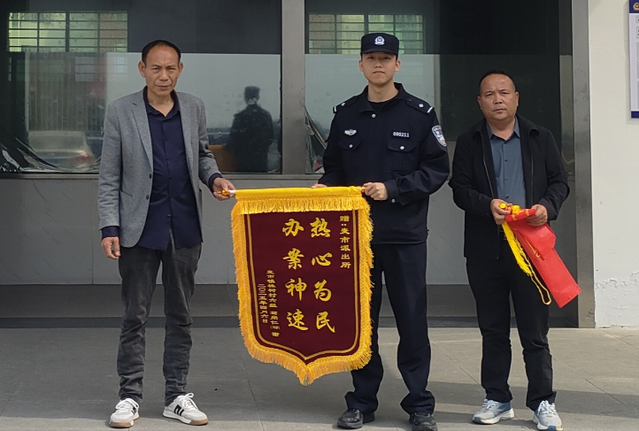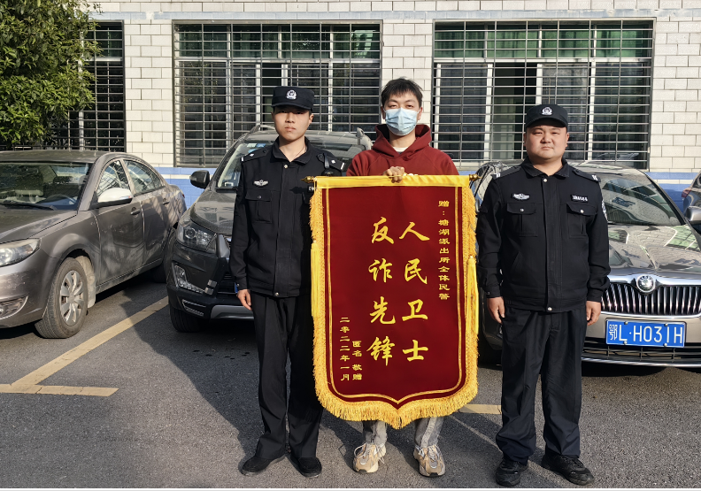 “警察同志,我来晚了,这面锦旗是我三年前就该送来的。”4月3日下午,塘湖派出所迎来了暖心的一幕。一位群众匆匆赶来,将一面印有“人民卫士,反诈先锋”的锦旗送到民警手中,笑言这面锦旗早在2022年就做好了,因一直在外地工作没能回来给耽搁了。