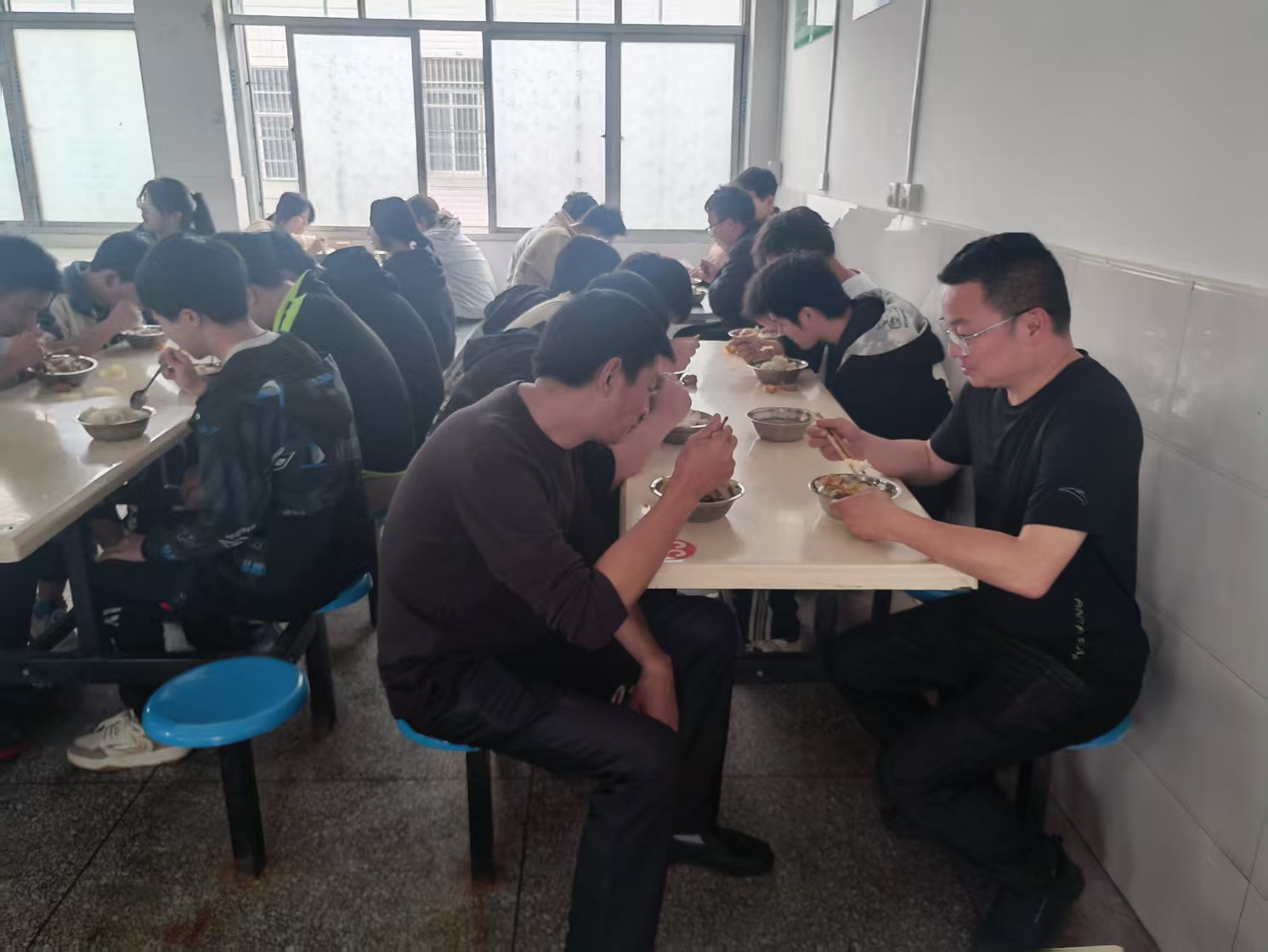 随后,家委会成员与学生一同在食堂用餐,亲身体验学生日常饭菜的口味、分量与质量。陪餐期间,家委会成员与学生亲切互动,询问他们对食堂饭菜的意见和建议。学生们纷纷表示,食堂的饭菜种类丰富、味道可口。