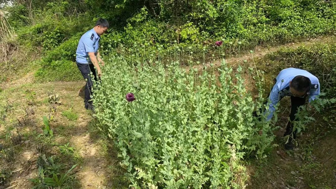 4月25日14时许,通城县公安局北港派出所民辅警在开展日常巡逻工作期间,行至北港镇龙门村六组附近时,敏锐地发现一处菜地里生长着几株“红花”。凭借日常工作中积累的关于毒品原植物的辨识经验,民辅警迅速意识到这些“红花”极有可能是罂粟。经仔细辨认,最终确认这些植株确系罂粟。