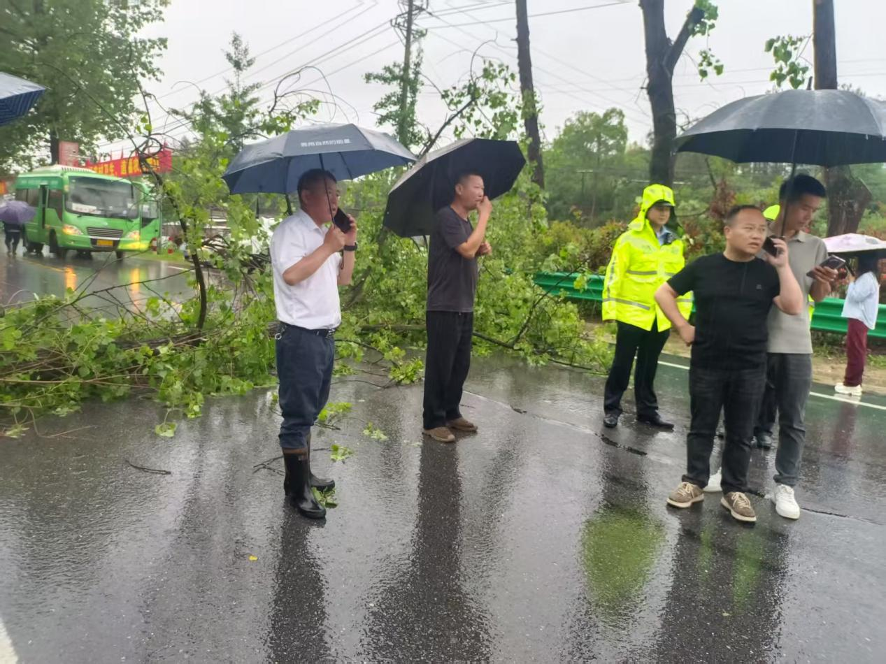 险情就是命令!人大代表冲锋在前。5月8日上午9点,受强降雨影响,353国道赛公村段发生树木倒塌险情,严重阻碍交通并威胁过往车辆安全。石南镇人大相关负责人一行第一时间赶赴现场,靠前指挥抢险工作。在统筹调度下,镇应急分队、村干部及周边群众协同作战,利用电锯、拖车等工具冒雨清理倒伏树木。经过1小时连续奋战,国道恢复畅通,隐患及时排除。