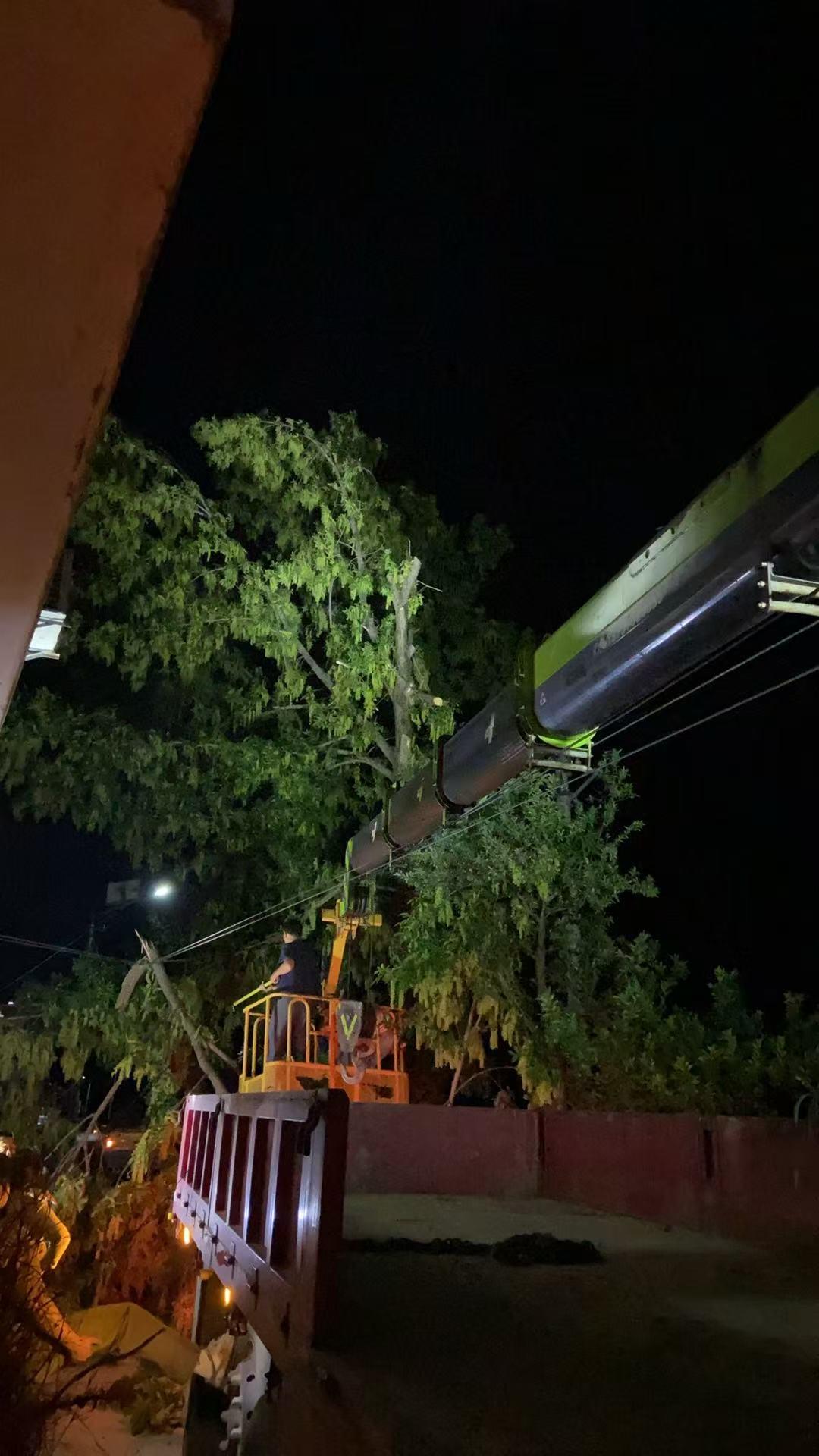大柱山村村委会迅速响应,第一时间组织人员赶赴现场。尽管事发夜间,视线不佳,工作人员仍借助照明设备,调配吊车、电锯等专业工具,争分夺秒开展清理工作。他们在保障自身安全的同时,小心翼翼地对压在电线杆上的树木进行切割、移除,全力恢复电力供应,消除安全隐患。