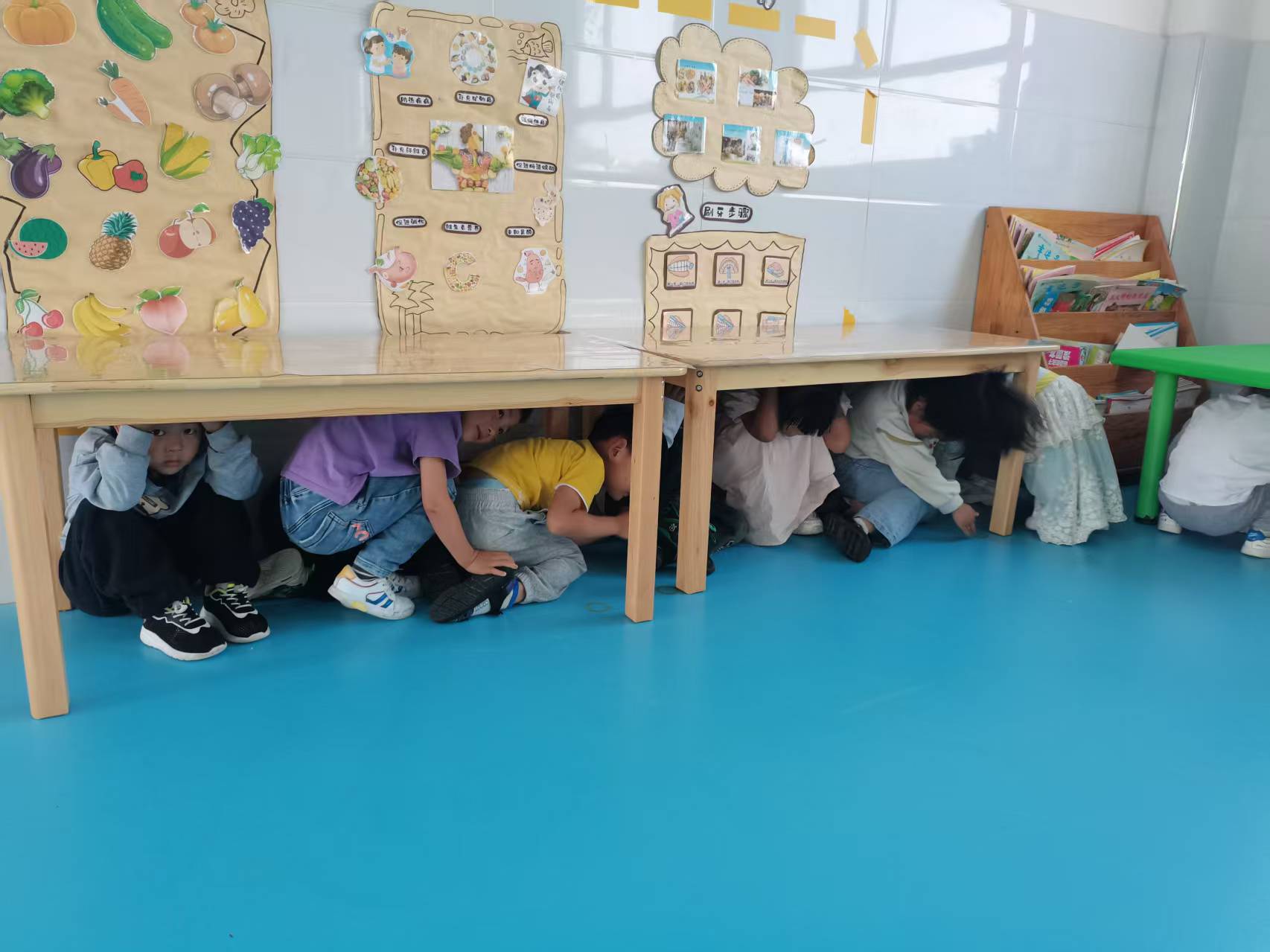 演练前,各班老师通过讲解、视频及动作示范等途径,让幼儿了解到地震的危害以及应急避险方法,学会简单的自护自救措施,提高安全防范意识,保证演练顺利开展。