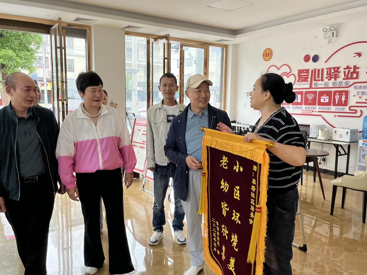 【通讯员 邱德文】5月23日,一面写着“小区环境美 老幼皆欣喜”的锦旗被送到通城县隽水镇雁塔社区党群服务中心,这是雁塔社区十网格茶仙居小区居民代表们为感谢雁塔社区党组织创新治理模式、用心用情服务居民而特意制作的。