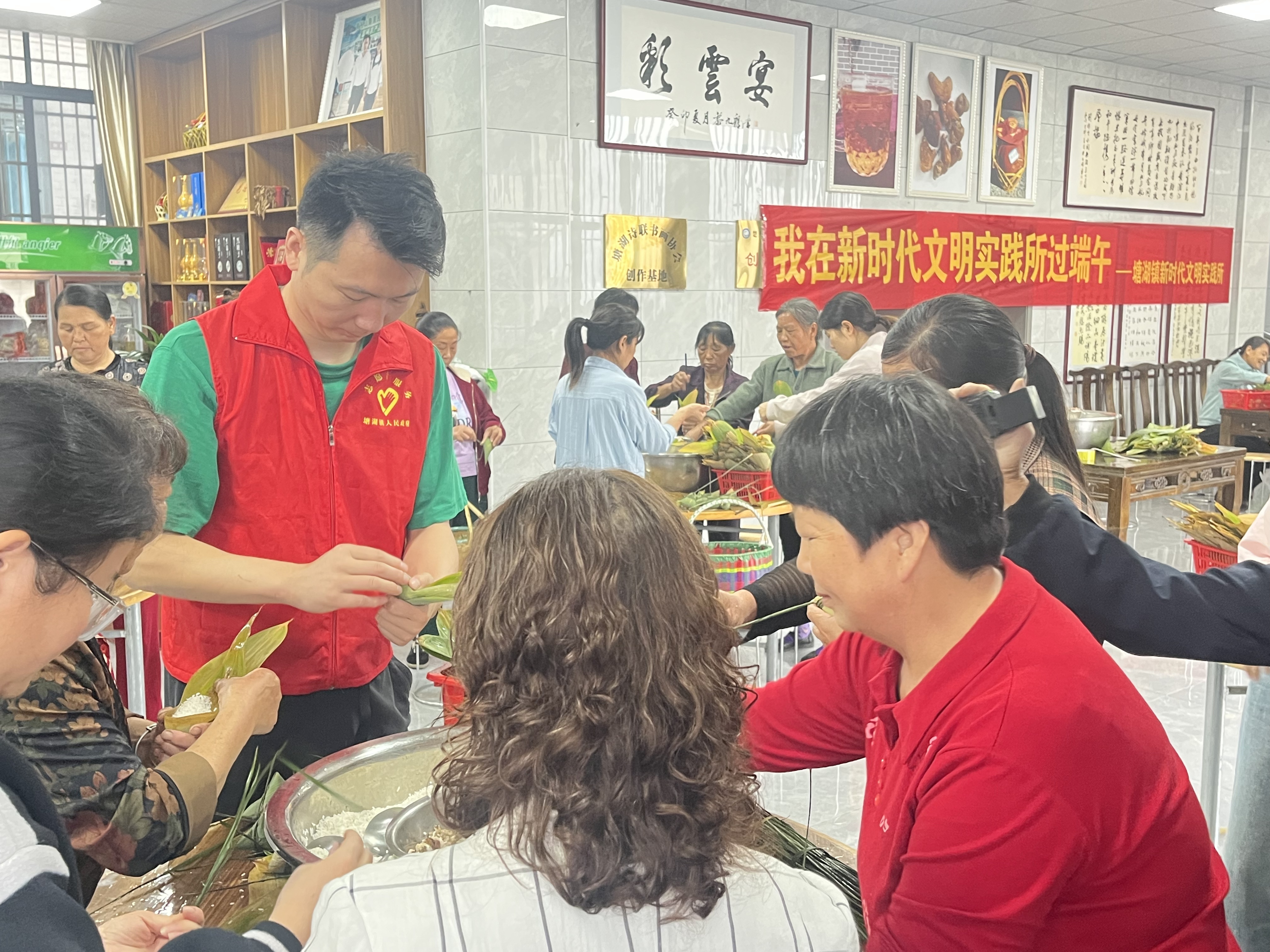 【通讯员 付钦 徐欣彤】为大力弘扬中华优秀传统文化,丰富群众精神文化生活,5月28日,通城县塘湖镇新时代文明实践所举办"我们的节日·端午"主题活动。通过诗歌朗诵、包粽子比赛等丰富多彩的形式,让群众在文明实践阵地中感受传统节日的文化魅力。