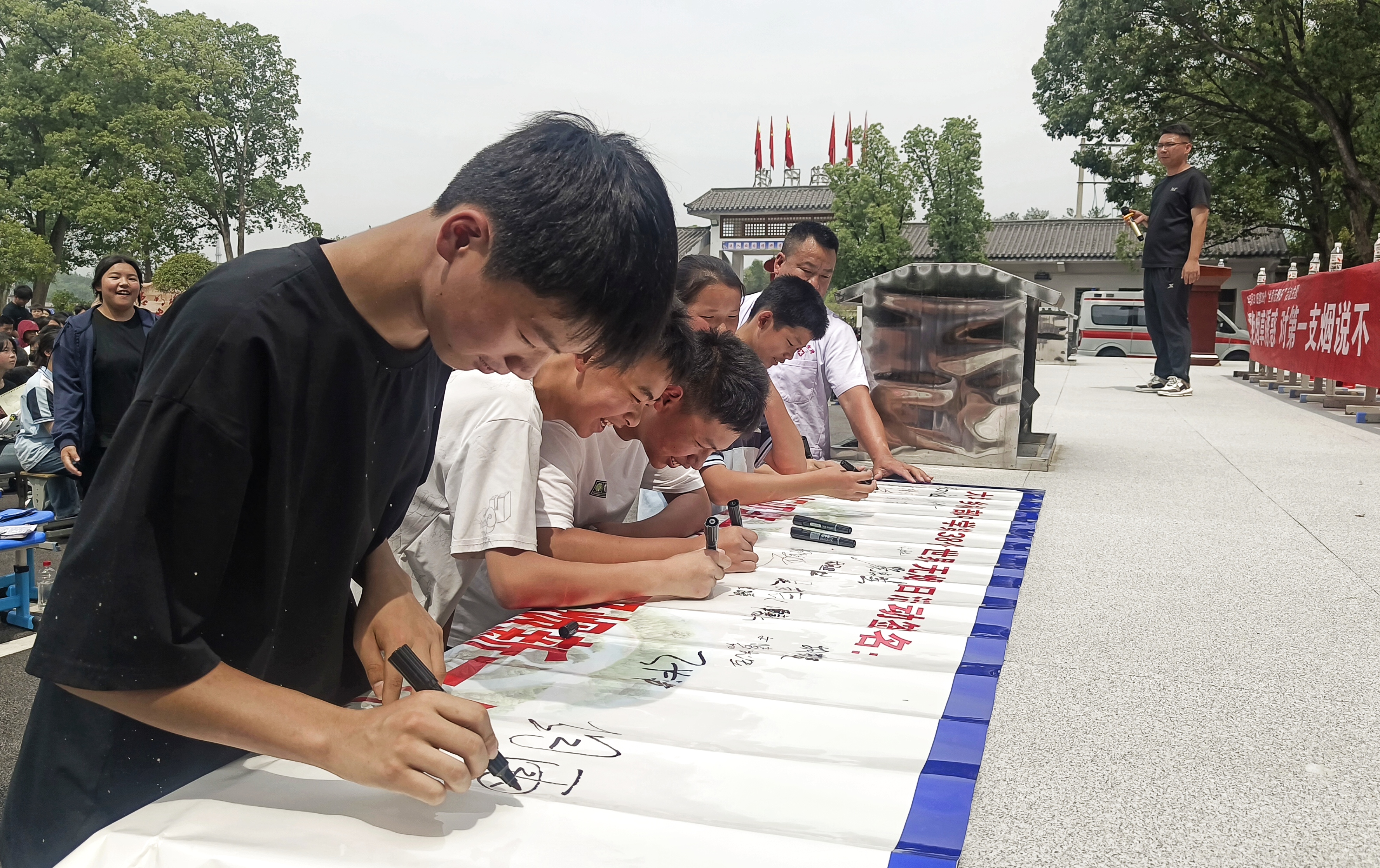 活动最后,举行了庄严的"拒吸第一支烟"集体签名活动。全校师生在印有"不吸烟新一代"字样的横幅上郑重签名。