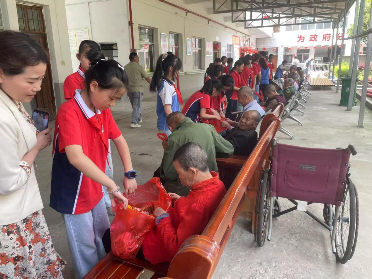 5月27日上午,通城县东门小学走进通城县隽水镇福利院,以实际行动传递尊老敬老之情。此次活动中用于购买水果、牛奶等慰问物资的费用,均来自学生此前义卖活动的爱心筹款,每一份礼物都凝聚着孩子们满满的心意。