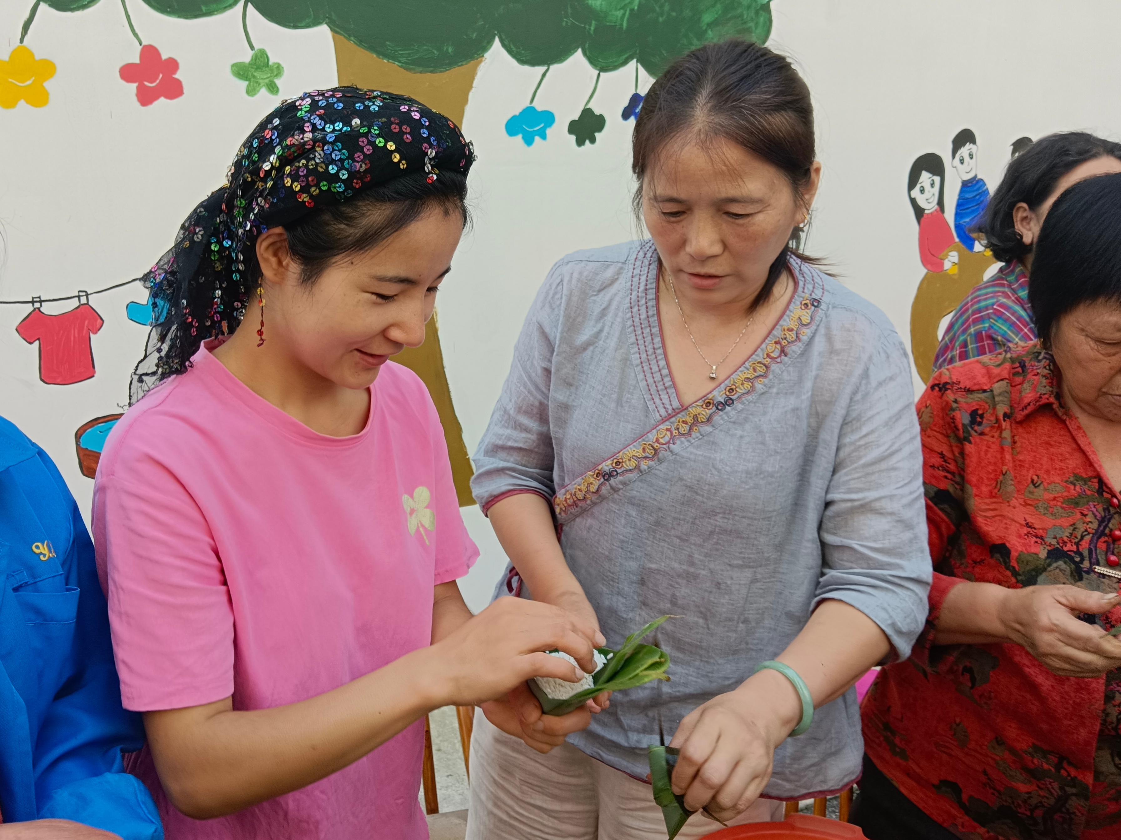 活动中,小区红色管家、各民族居民及社区工作人员等数百人齐聚一堂,大家围坐在一起,一边协作包粽子,一边叙述邻里情,各民族居民热情分享本民族节日传统习俗,相互学习不同民族的特色粽子制作方法。现场笑声不断,其乐融融。