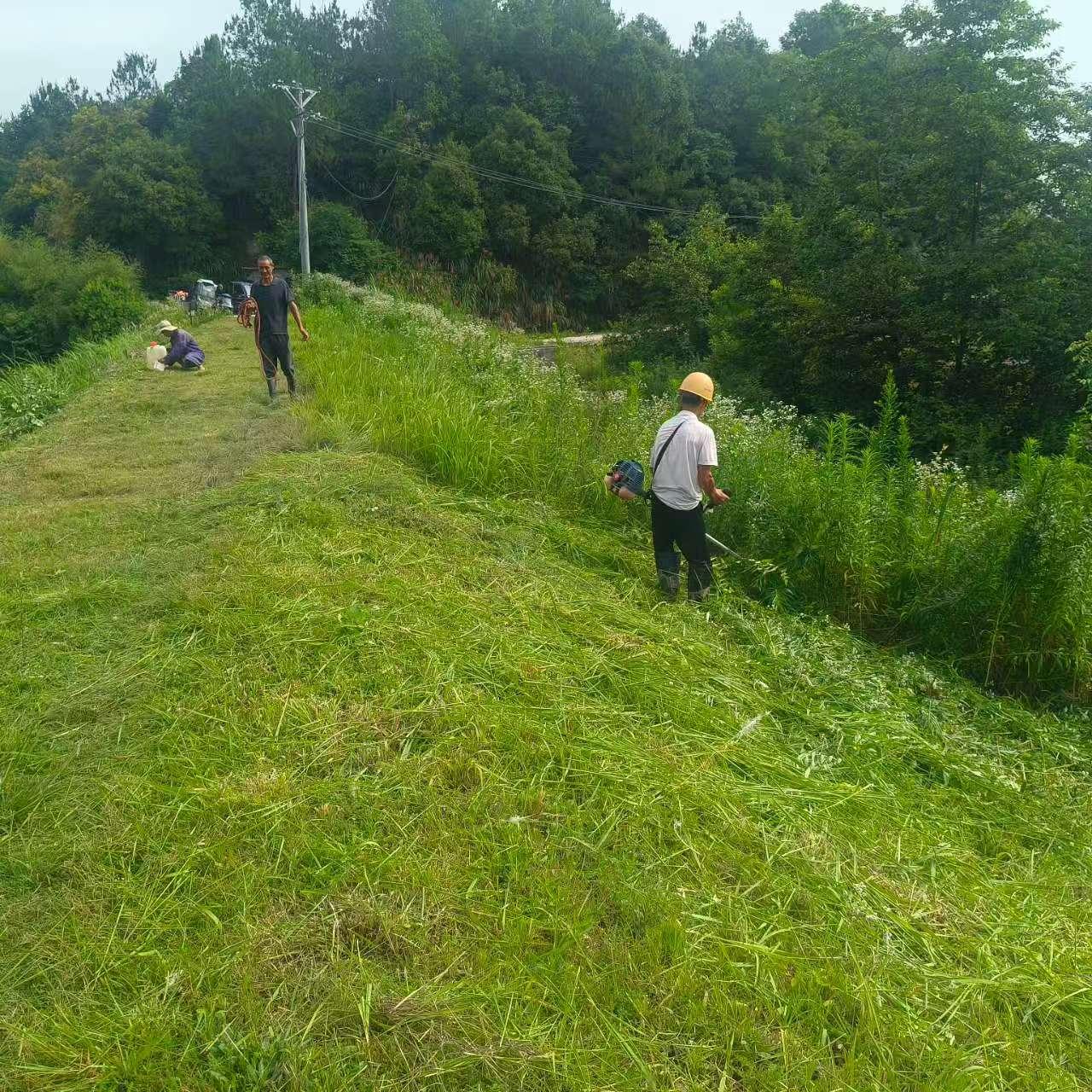 在行动现场,割草机轰鸣作响,工作人员分工协作:有的手持镰刀铲除顽固杂草,有的接力搬运堆积的草垛。并同步开展水库巡查,检查堤坝、水位、设施运行情况。尽管烈日炎炎,大家仍干劲十足,将库岸、堤坝等区域的杂草逐一清理,让水库周边环境整洁有序,行洪通道恢复畅通。