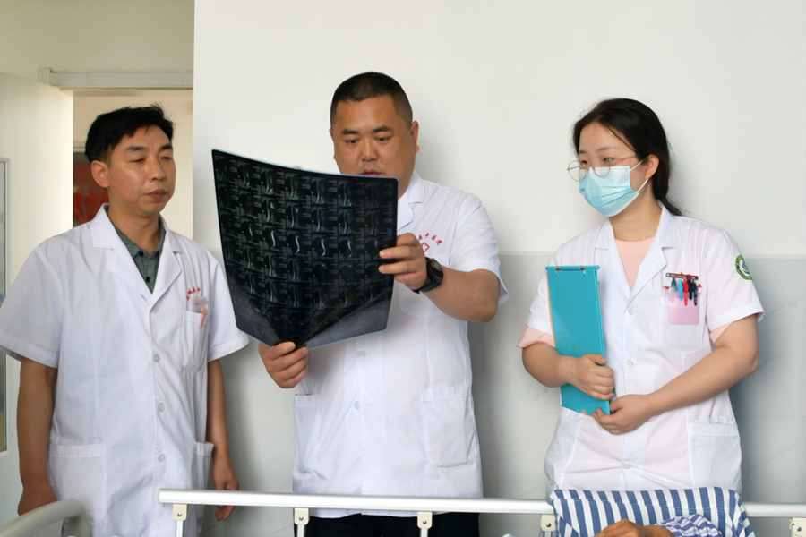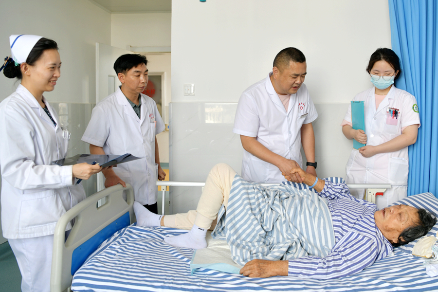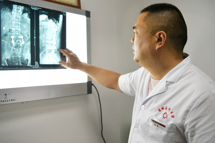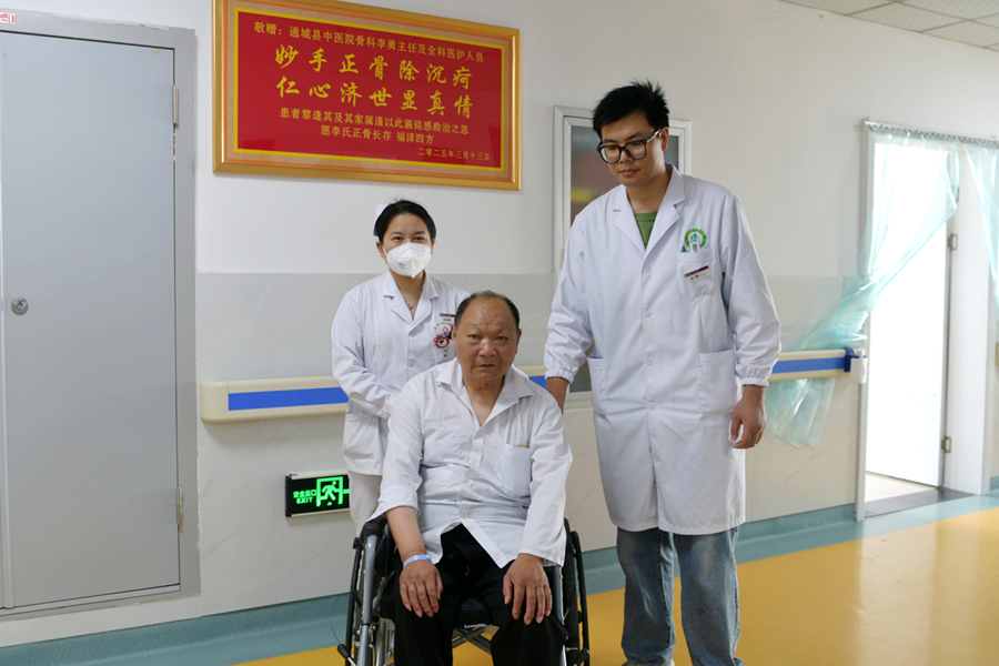 考虑到老人身体状况和手术风险,李勇团队采用保守治疗,通过手法整复和中药调理,二个月后老人能扶拐行走。