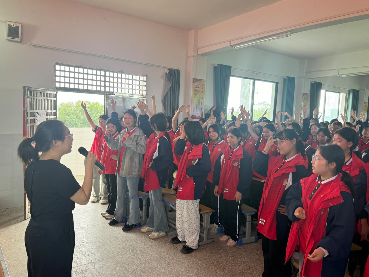 讲座现场,黎思维老师用一个妙趣横生的互动游戏点燃了全场:"全体起立!老师说抬起右臂..." 同学们敏捷的反应和灿烂的笑容,为这场青春探索之旅拉开了序幕。