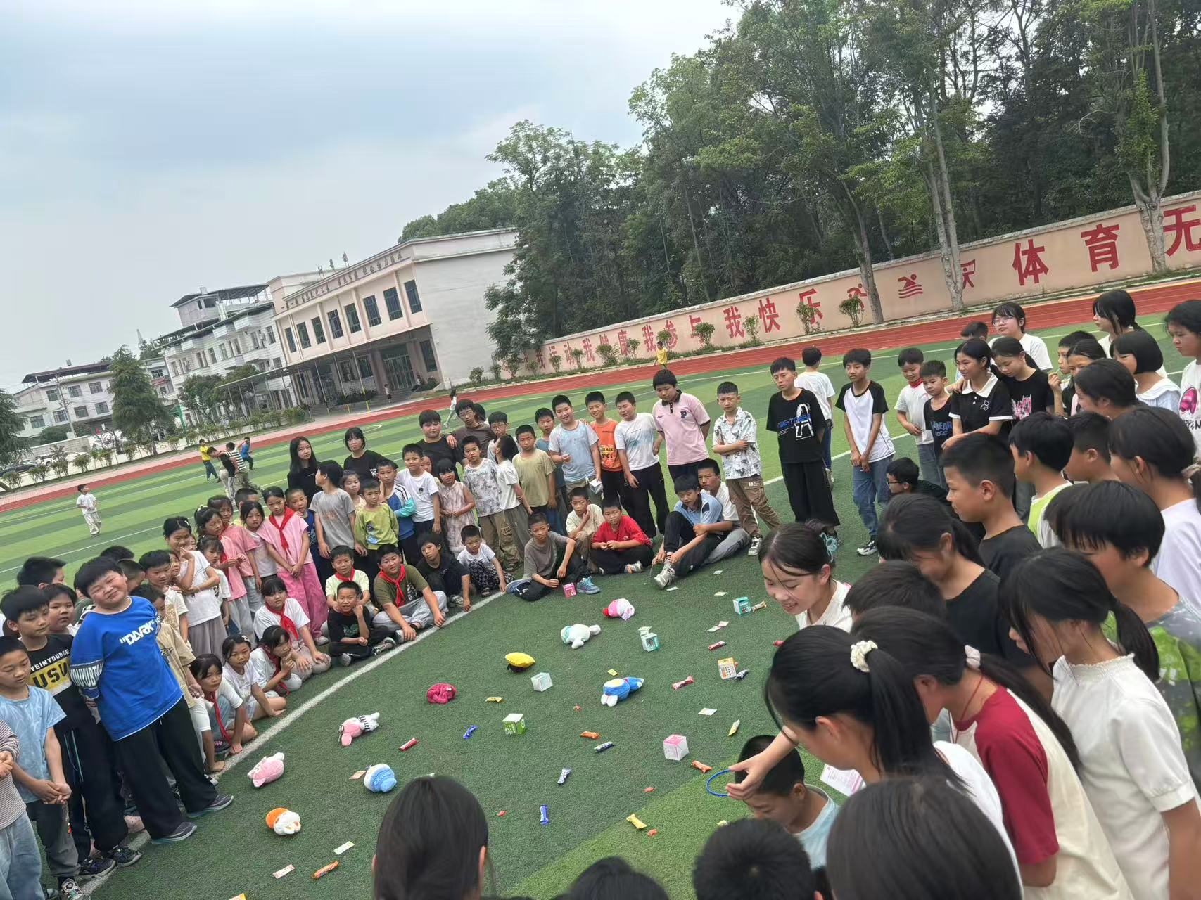 隔天下午,阳光正好。吴老师没有翻开课本,而是带着神秘的微笑宣布:“同学们,今天下午,我们上一节特别的‘实践课’——去操场!”孩子们面面相觑。到了操场,吴老师像变魔术般,从大纸箱里拿出崭新的红笔、橡皮、彩色的便签本、憨态可掬的小玩偶、亮晶晶的水果糖……五颜六色的“宝藏”被整齐码放在操场中央。接着,她分发了一大把套环。