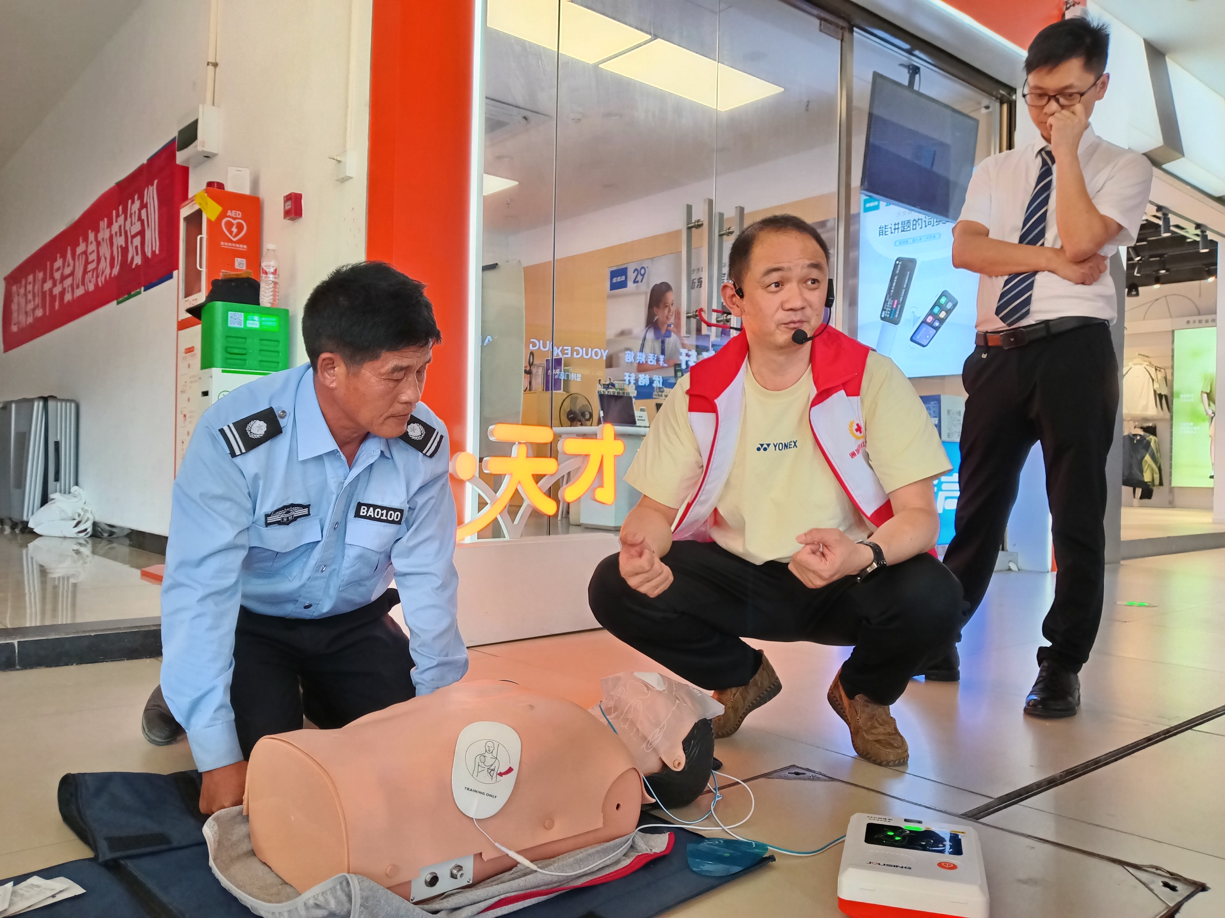 县红十字会还在AED布点单位开展了“心肺复苏+AED使用”等为主要内容的急救知识和技能培训活动。