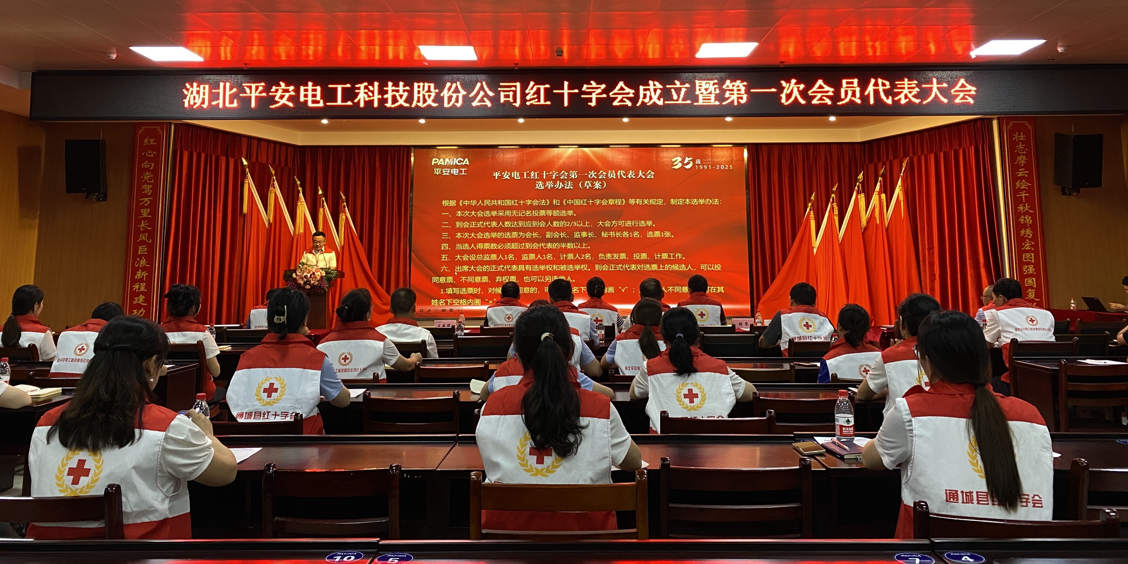 会议学习了《国际红十字会与新月运动七项基本准则》,宣读了《关于同意成立湖北平安电工科技股份公司红十字会的通知》,举行了授牌仪式,选举产生了第一届理事会和会长、副会长、秘书长。