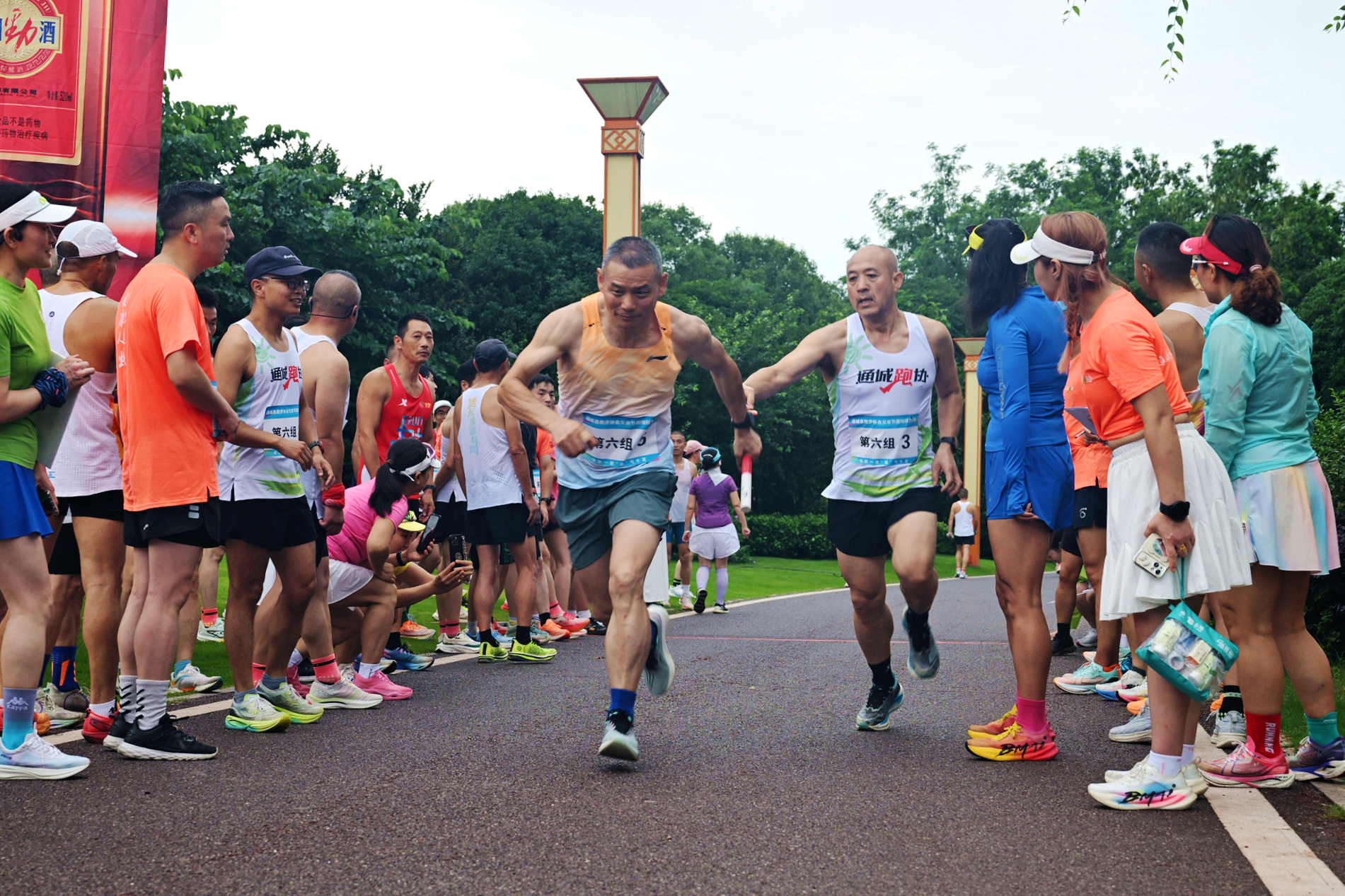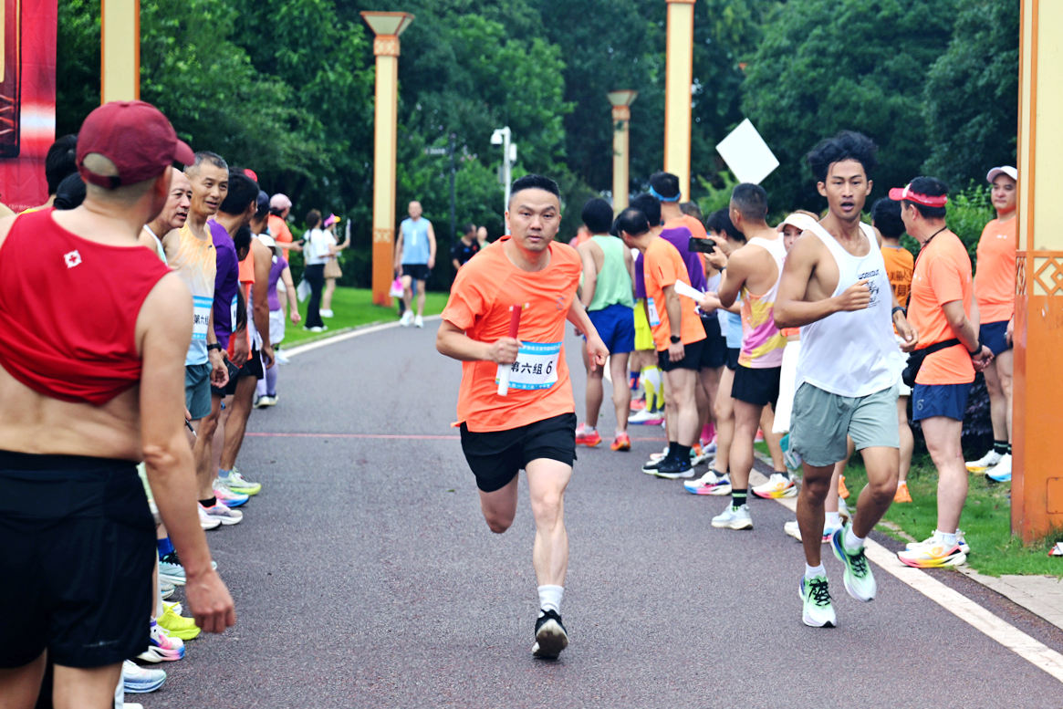 活动采用八人接力赛制,参赛者按跑步水平分组后随机组队,每人完成公园步道一圈接力。