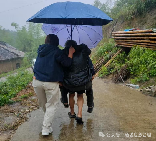镇村干部即上门劝说转移,70岁户主金忠恕和其子身体行动不便,儿媳存在智力障碍,王剑和叶国楼分别背着父子俩,和其他镇村干部一起将金忠恕家4人成功转移。
