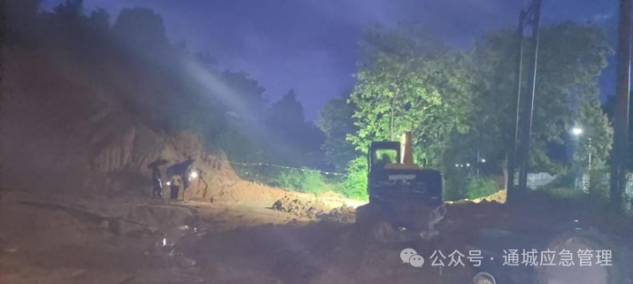 同时,为防止下半夜暴雨漫灌对房屋带来更大的安全威胁,村干部动员附近村民参与现场积水分流等工作,并协调挖机冒雨作业,在路口处紧急筑起1米多高的土堤坝。