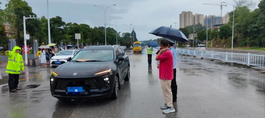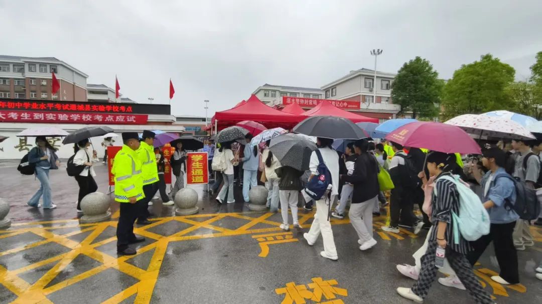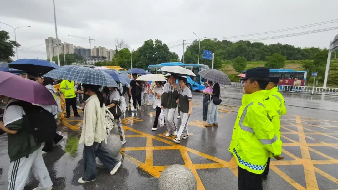 中考期间,通城县持续降雨,给考生出行带来诸多不便。为确保考生顺利赴考,通城公安提前谋划、周密部署,组织警力提前到岗,顶风冒雨,在各考点周边及主要路段加强巡逻防控和交通疏导,为考生开辟“绿色通道”。遇到行动不便或因恶劣天气可能延误考试的考生,民警主动伸出援手,用警车护送考生及时抵达考场。