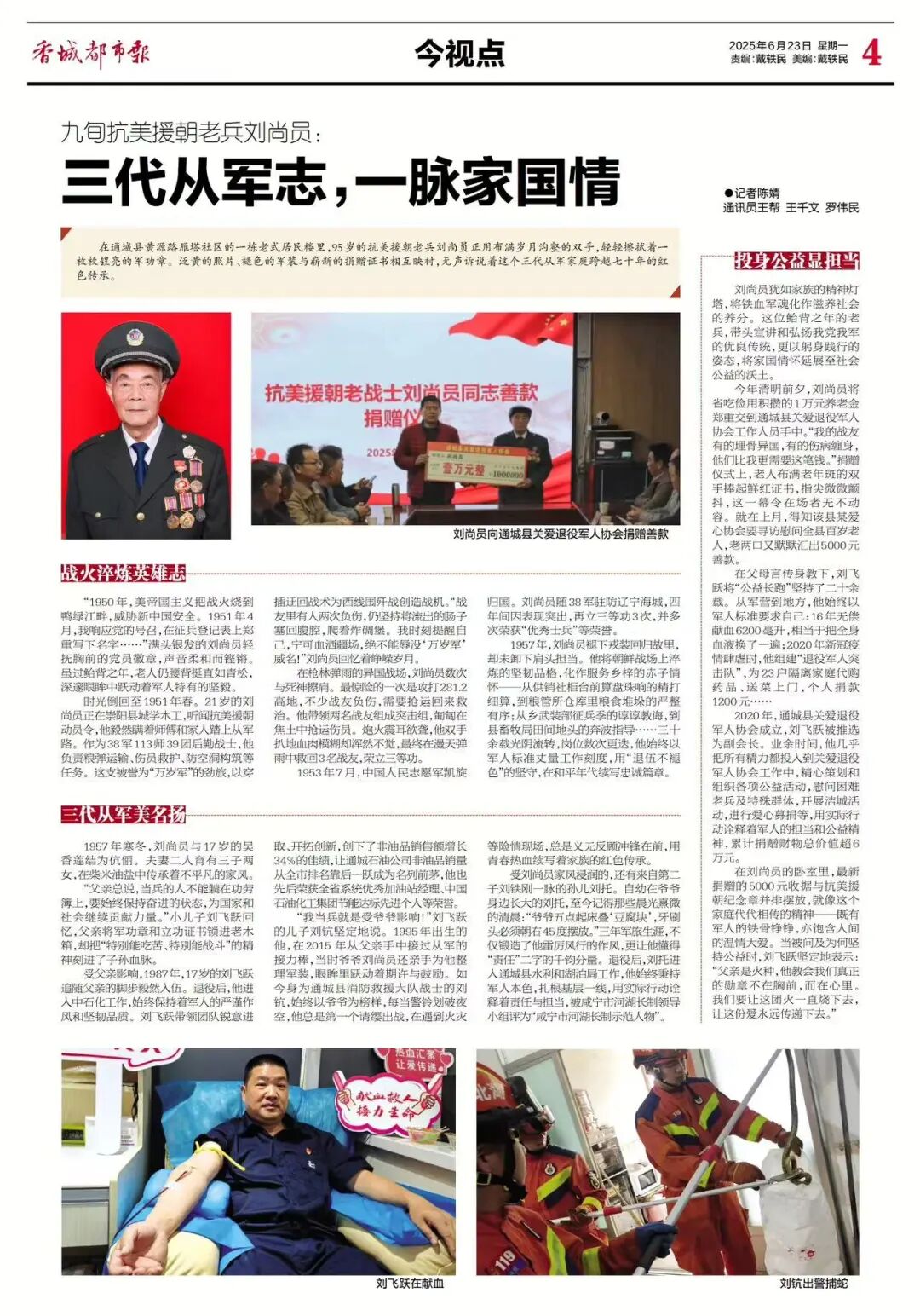 在刘尚员的卧室里,最新捐赠的5000元收据与抗美援朝纪念章并排摆放,就像这个家庭代代相传的精神——既有军人的铁骨铮铮,亦饱含人间的温情大爱。当被问及为何坚持公益时,刘飞跃坚定地表示:“父亲是火种,他教会我们真正的勋章不在胸前,而在心里。我们要让这团火一直烧下去,让这份爱永远传递下去。”
