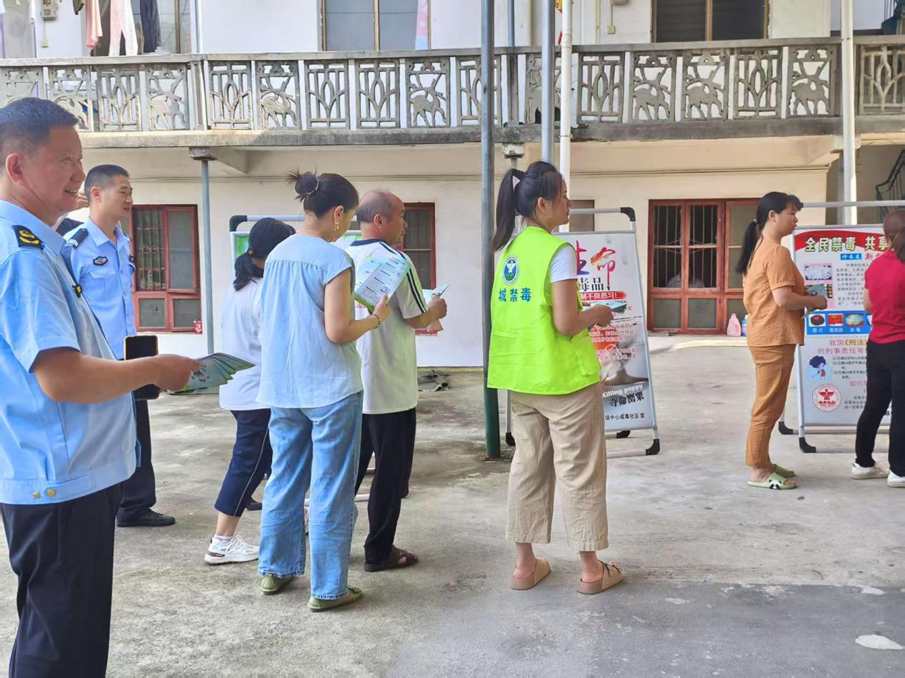 活动现场设置在车间要道,通过多元形式开展精准宣传教育。图文并茂的展板生动揭露毒品的伪装手段与严重危害,便携手册将宣传触角延伸至更广泛区域;禁毒社工与派出所民警借助高仿毒品模型,向员工详细解析毒品特征、致命后果以及涉毒行为触碰的法律红线;镇市场监督管理所人员结合安全生产要求,着重强调吸毒行为对操作规范的严重冲击和破坏。