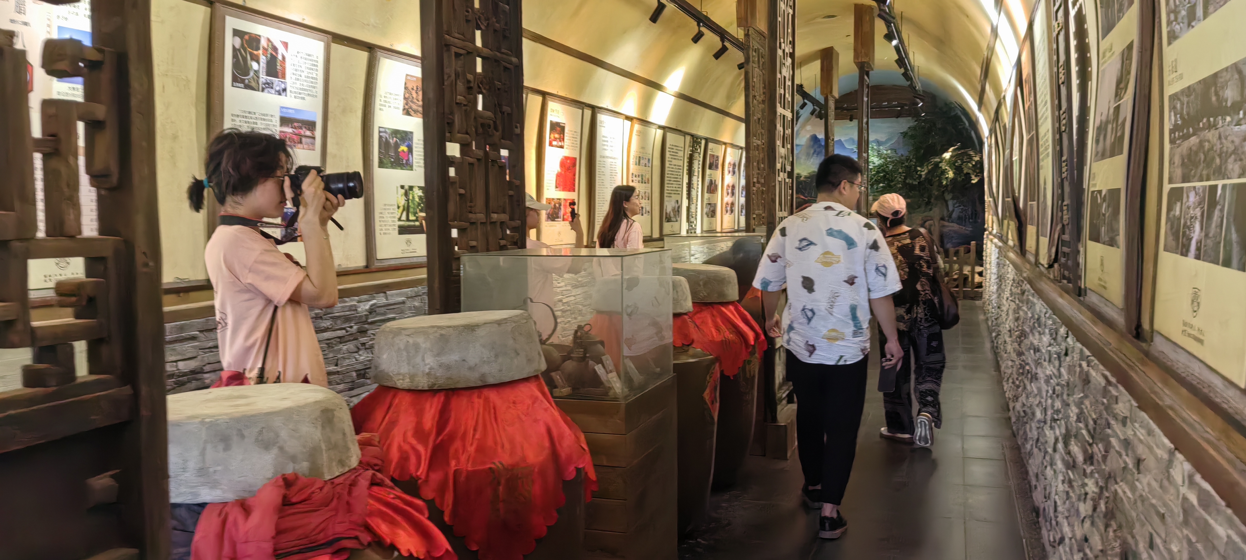调研团队抵达大观园后,立即来到了古瑶文化长廊,专注聆听讲解员讲解瑶族文化的根源、迁徙历程、瑶族历史传说、民俗故事、方言俚语等,团队成员一边听一边记录,时不时提问。接着,团队实地考察了古瑶民居石屋、树屋等文化遗迹,体验了古瑶茶道,参观了古瑶文化博物馆。通过亲身体验,团队成员深刻感受到古瑶文化的独特魅力与深厚内涵。