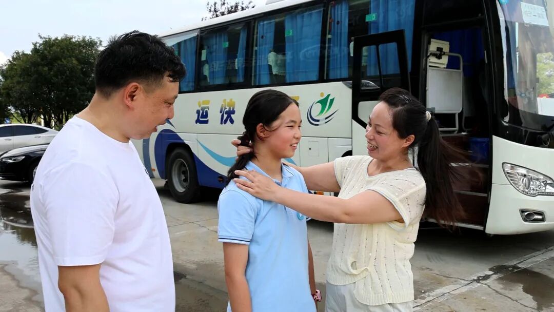 7月9日下午3点30分,孩子们乘坐的大巴准时抵达南京市。12岁的袁梓嫣走下大巴,目光急切地搜寻着。当看到人群中翘首以盼的父母时,她再也抑制不住激动,飞奔着向他们跑去。