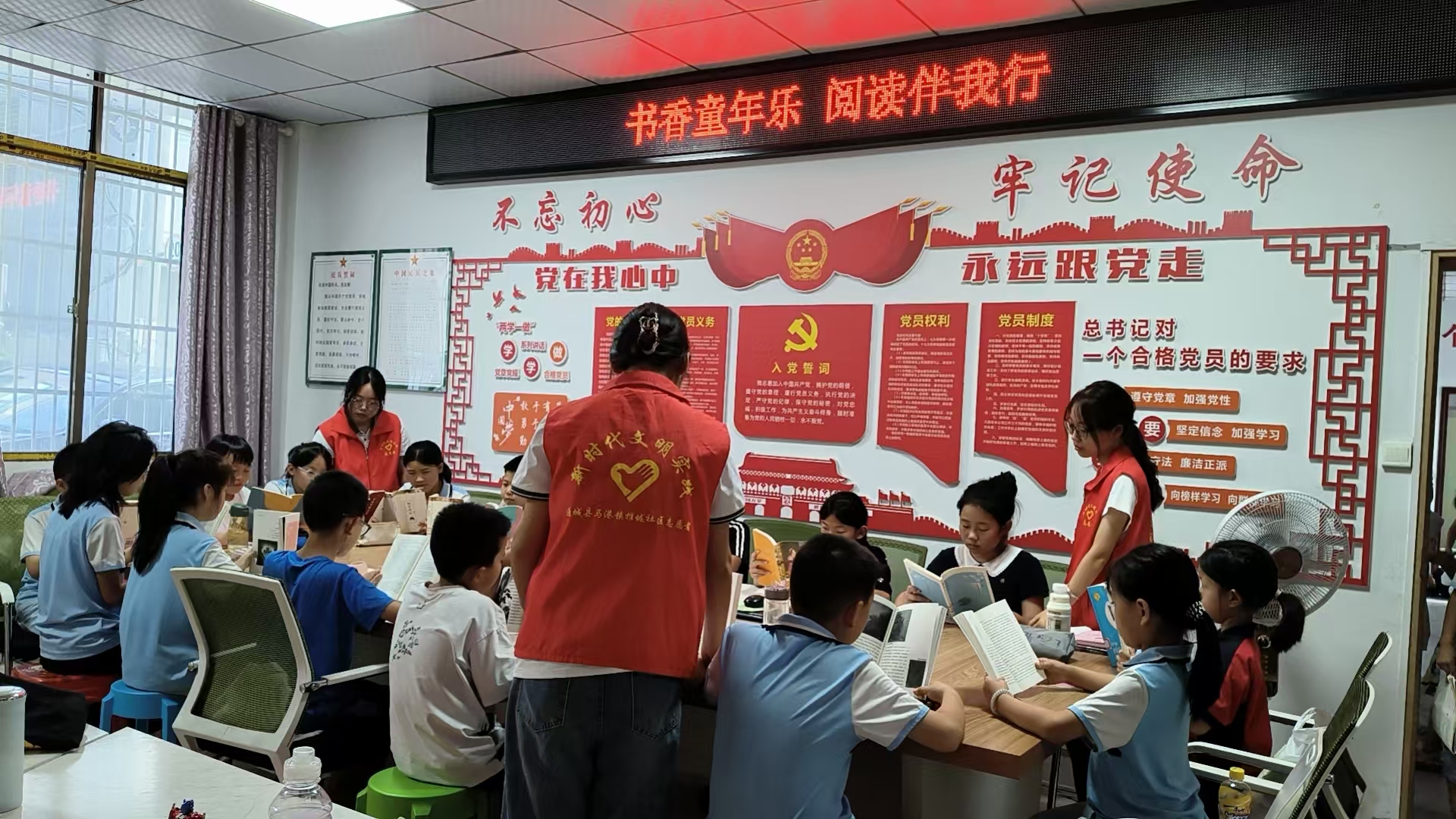 活动伊始,武昌理工学院的志愿者老师以“护苗行动” 为切入点,为孩子们带来了一场生动有趣的阅读引导课。他们用亲切的语言讲述了阅读积极健康书籍的重要性,分享了实用的阅读方法,还通过案例分析,让孩子们明白非法出版物和不良信息的危害。志愿者们活力满满,通过提问互动的方式,不仅激发了孩子们对书籍的好奇心,更增强了他们的自我保护意识。随后,孩子们在农家书屋中根据自己的喜好挑选书籍,纷纷沉浸在书的海洋中。有的小朋友聚在一起,小声地讨论着书中的精彩情节;有的则独自坐在角落,专注地品读着,时不时露出会心的笑容。