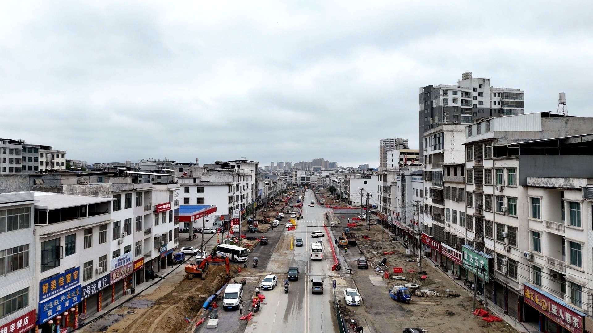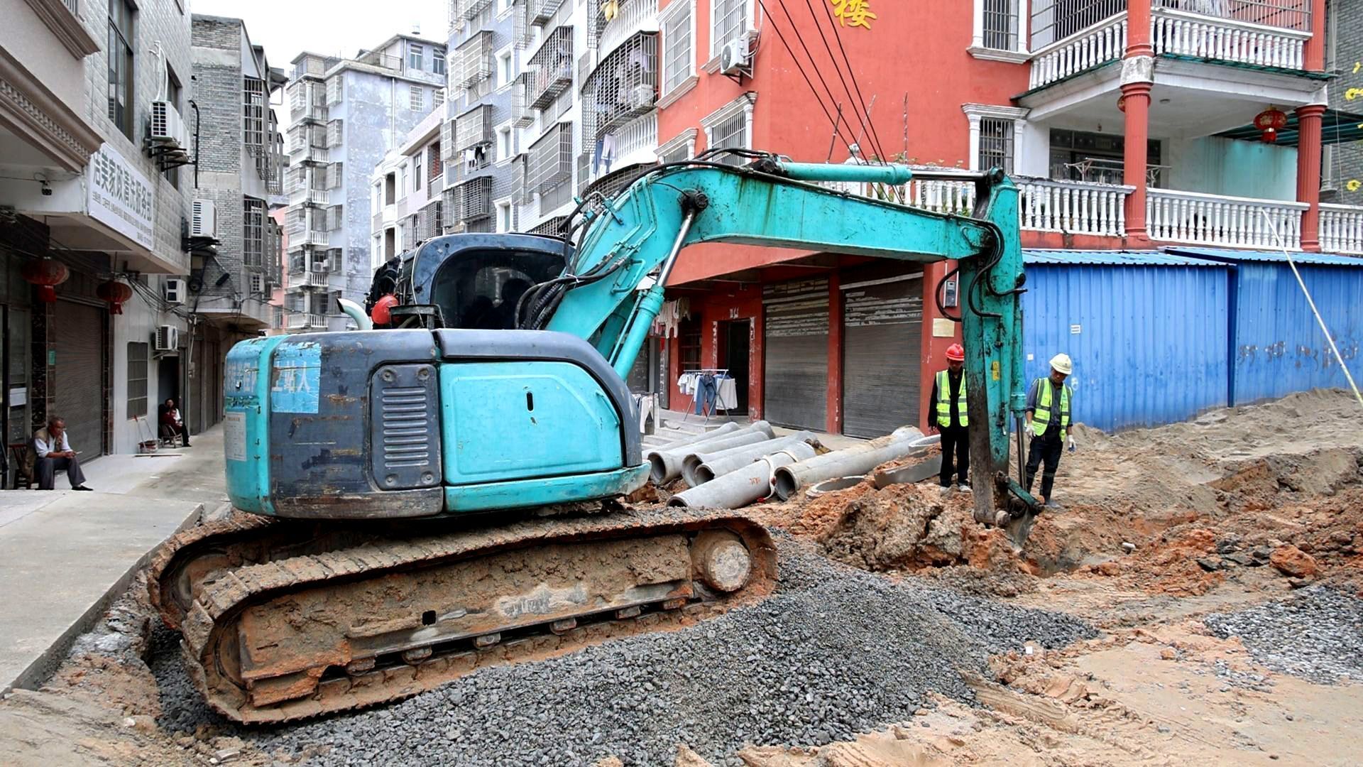 除了小区改造,路网升级同样跑出“加速度”。在隽水城区和平街施工现场,施工团队抢时间、赶进度,全力推进项目建设。