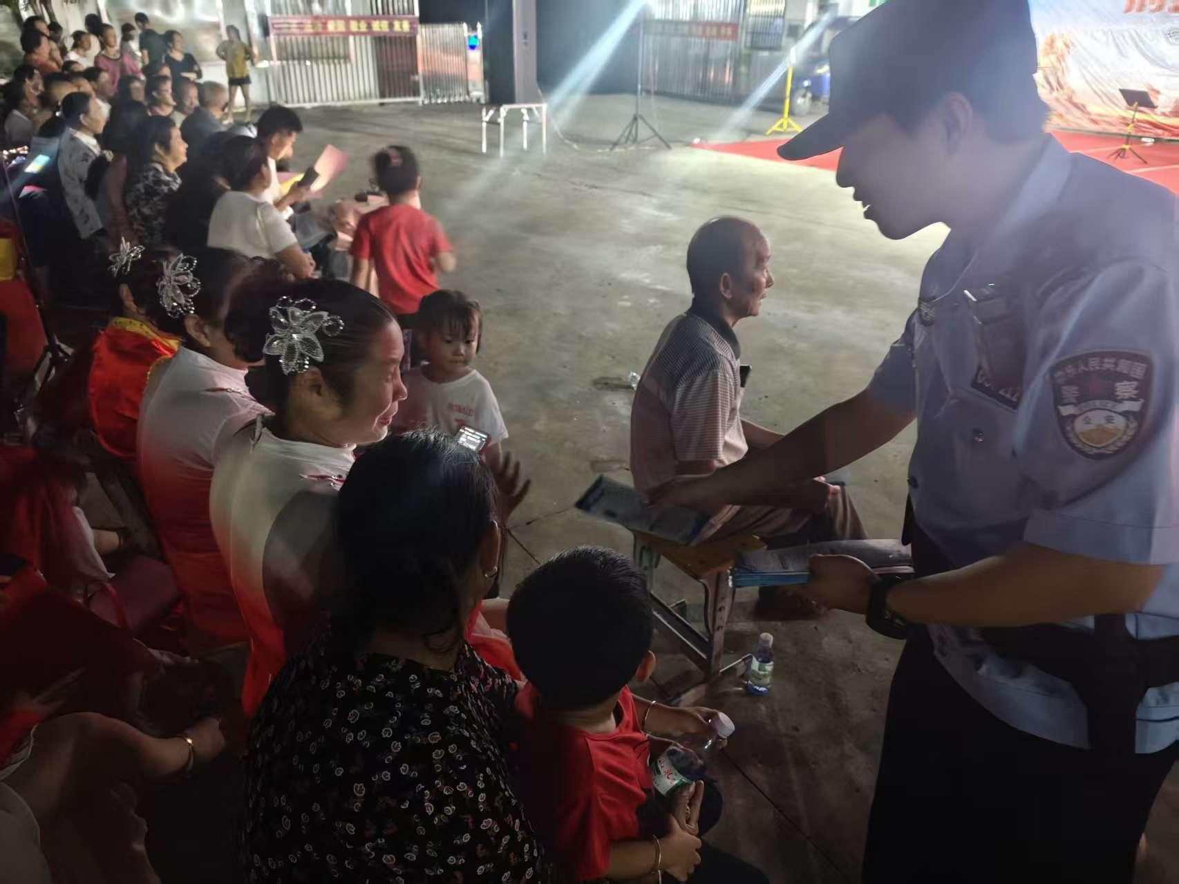 活动期间,民警一边维护现场秩序、排查安全隐患,确保“村晚”平稳有序进行;一边向在场观众发放反诈宣传单页,结合村民身边真实的诈骗案例,用通俗易懂的语言讲解常见诈骗手段。“陌生链接不要点,涉及转账都是诈骗!”民警反复强调反诈核心要点,提醒大家提高警惕,守护好“钱袋子”,现场村民认真聆听,主动咨询反诈疑问,宣传氛围浓厚。