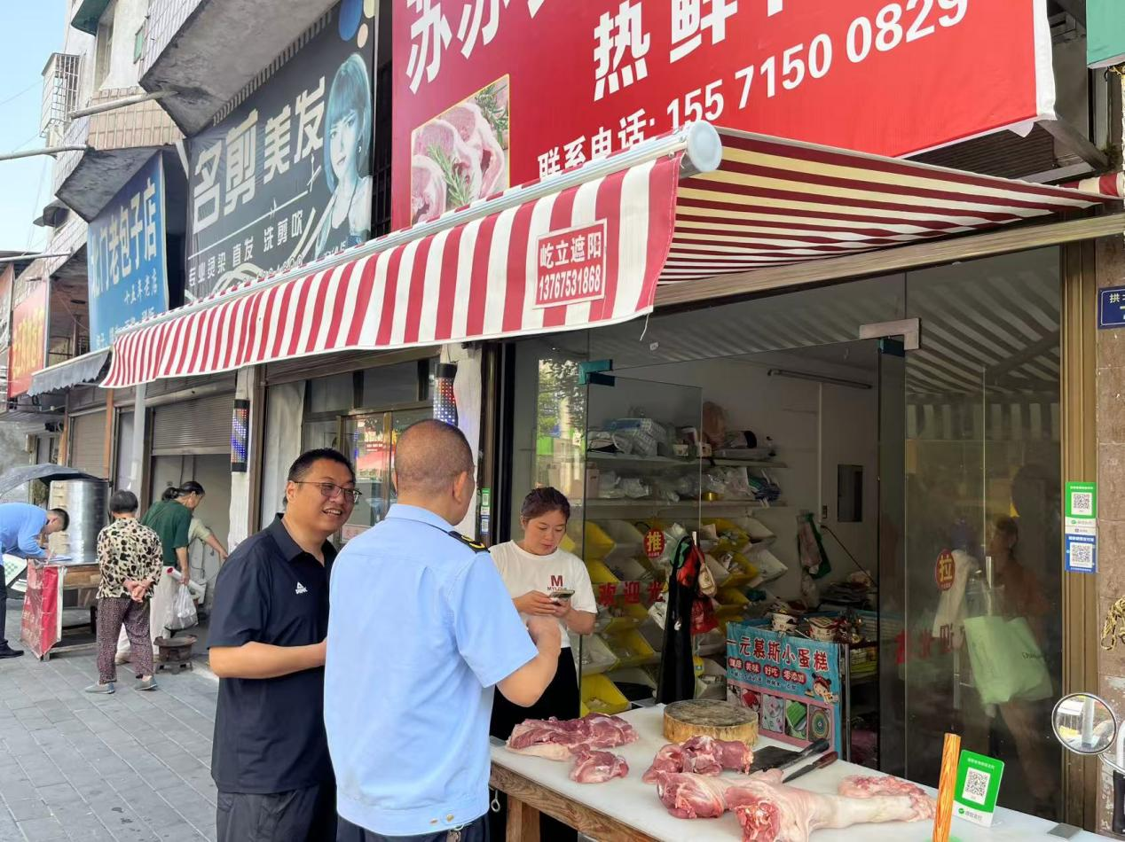 行动前期,隽水镇、雁塔社区与三家执法部门共同成立专项工作组,通过前期细致摸排,明确整治重点聚焦学校门口500米范围,覆盖周边商铺、流动摊贩、公共通道等关键区域,确保整治“精准发力”。整治现场各部门分工协作、高效联动:城管执法大队重点整治占道经营乱象,逐一清理流动小吃摊与违规摆放的广告牌,对3处拒不配合整改的摊贩依法依规进行处置,同时向周边商户普及市容管理规定,引导商户规范经营;市场监督管理局执法人员逐户排查餐饮商铺、便利店,严格核查食品经营许可证、从业人员健康证,细致检查食品生产日期、保质期及储存条件,对2家存在临期食品未下架问题的店铺现场下达整改通知书,明确限期整改要求。