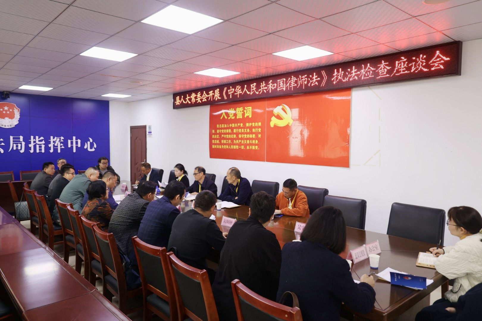 座谈会上,检查组听取了县司法局关于全县律师工作开展情况的汇报;县人大代表、县直有关单位和部分律师代表围绕律师执业权益保障、行为监管、队伍建设等方面提出意见建议。