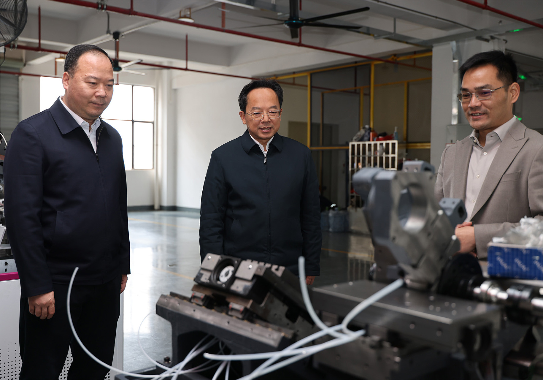 在广东考察期间,黄建平先后前往广州某新材料有限公司、深圳市某科技股份有限公司、惠州市某数控技术有限公司、某电机(惠州)有限公司,实地参观企业生产车间,与企业负责人面对面交流,详细了解企业发展历程、技术研发、市场布局、战略规划,聚焦企业扩产投资需求,深挖合作契合点,推动招商项目落户通城。