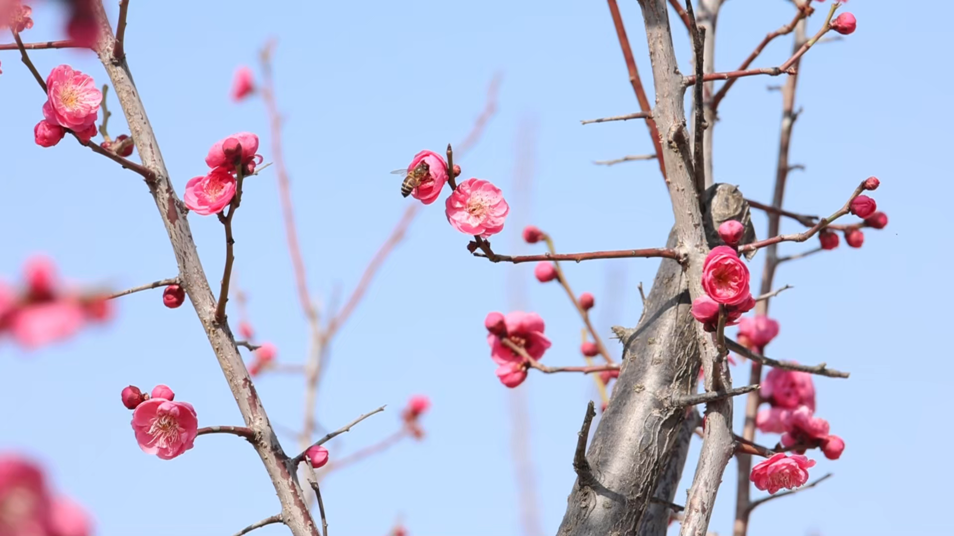 踏入梅林,梅花淡雅的幽香扑鼻而来。此前经历了低温雨雪冰冻天气的洗礼,枝头的梅花愈发鲜艳。微风轻轻拂过,花瓣便微微颤动,为静谧的梅林增添了几许盎然生机。