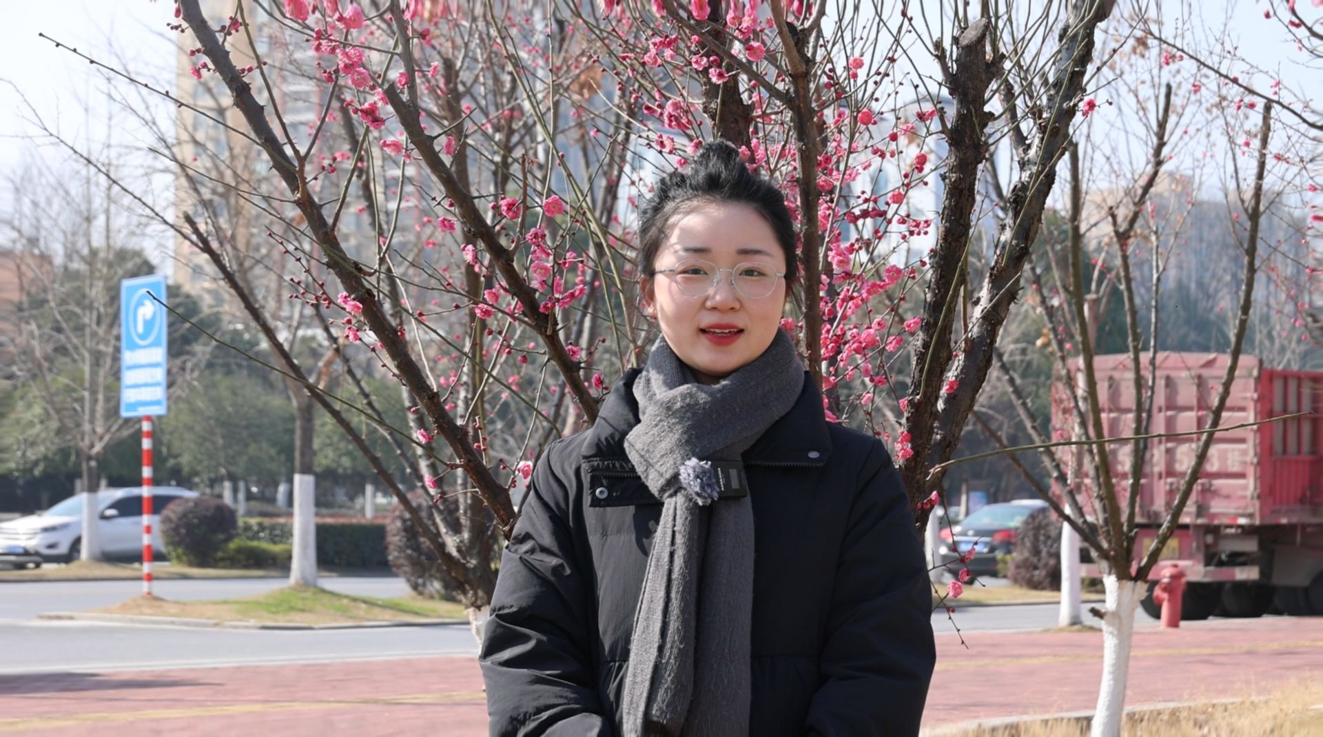 隽水镇居民 郑女士:我是专门过来赏梅的,早就听说这里的梅花开得好,今天特地找了一个好天气过来打卡。