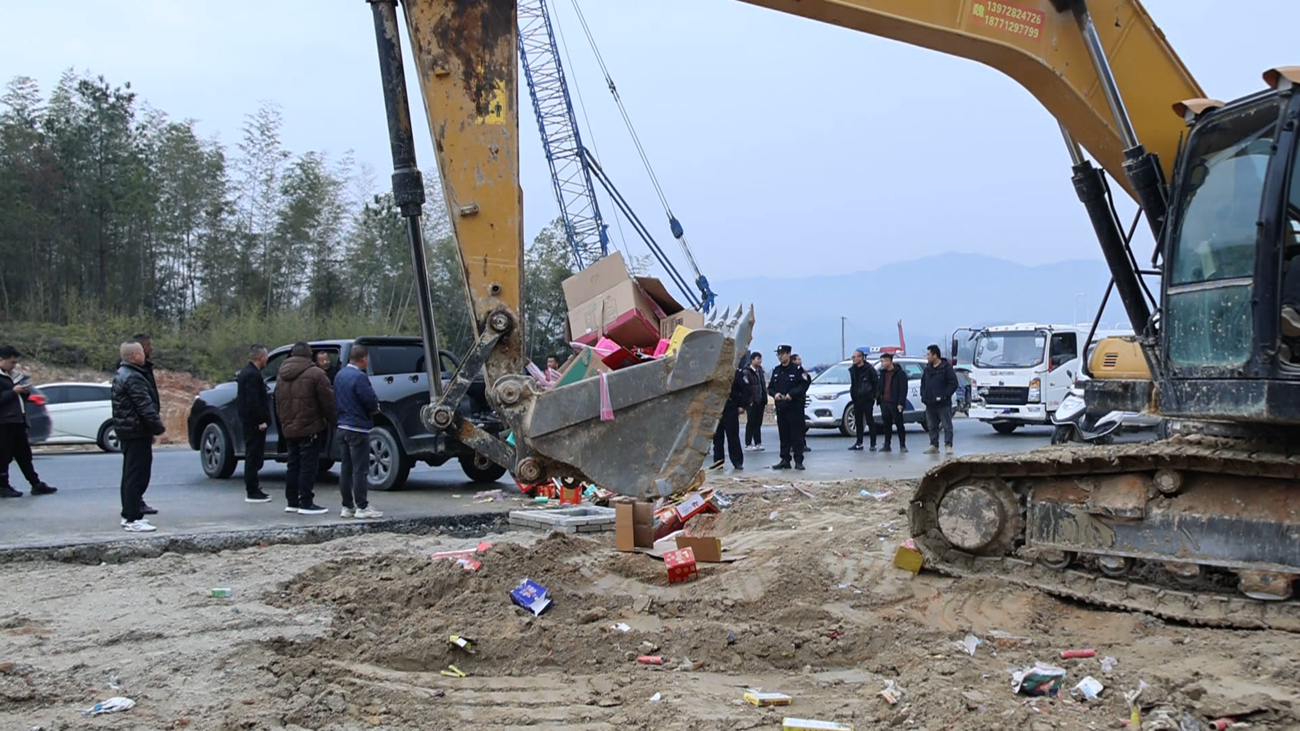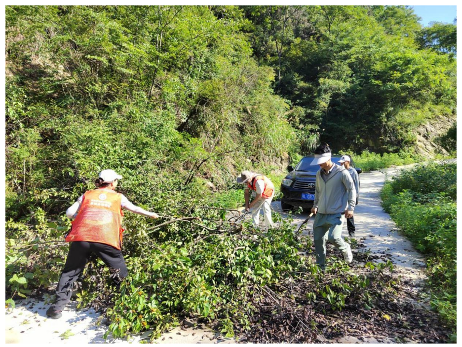 2024年7月5日,因连日暴雨导致山体滑坡,前往通城县四庄乡陈寿昌烈士墓的道路被倒塌树干阻挡,无法继续前行,普查队清理路障