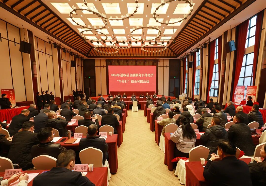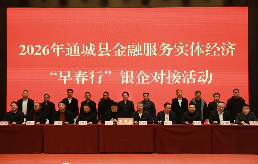 【全媒体记者 吴雷】2月5日下午,2026年通城县金融服务实体经济“早春行”银企对接活动在县华美达酒店举行。县委书记黄建平,咸宁金融监管分局党委书记、局长张志兵,人行咸宁市分行党委书记、行长王邦武出席活动并讲话。县委副书记、通城经济开发区党工委书记杨奇主持活动。县委常委、常务副县长杨昌出席活动并介绍通城经济金融情况,县领导冯海燕、韩旭辉,5家市级金融机构主要负责人出席活动。