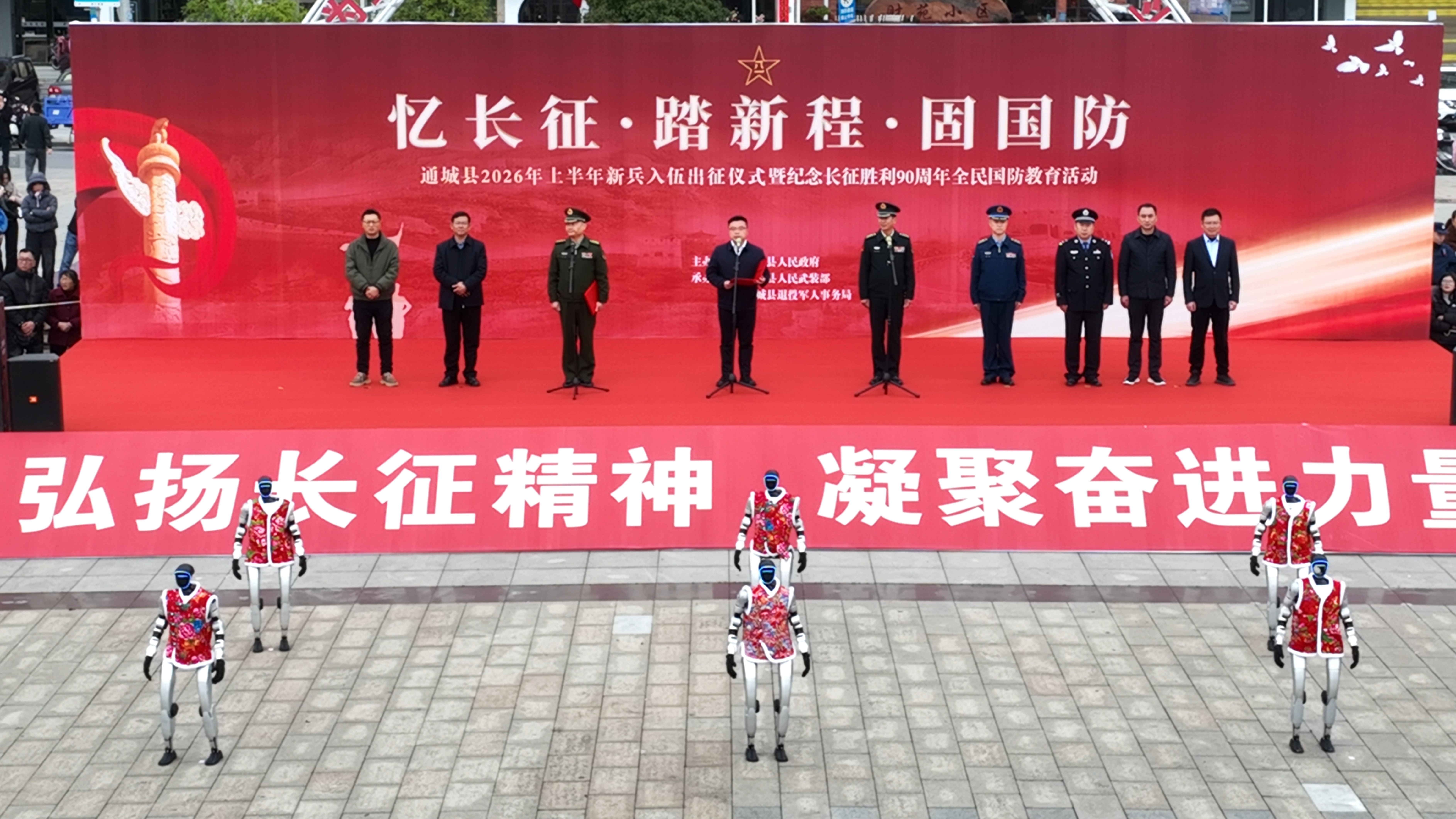 此次仪式创新融入科技元素,智能机器人带来整齐划一的武术表演,机器狗合着鼓点演绎 “科技版” 舞狮,让欢送仪式焕发现代活力,为出征新兵送上别样祝福。随后,县二中师生合唱《没有共产党就没有新中国》,新兵们齐声高唱《强军战歌》,歌声嘹亮、情感真挚,激荡起浓浓的爱国情怀与强军担当。