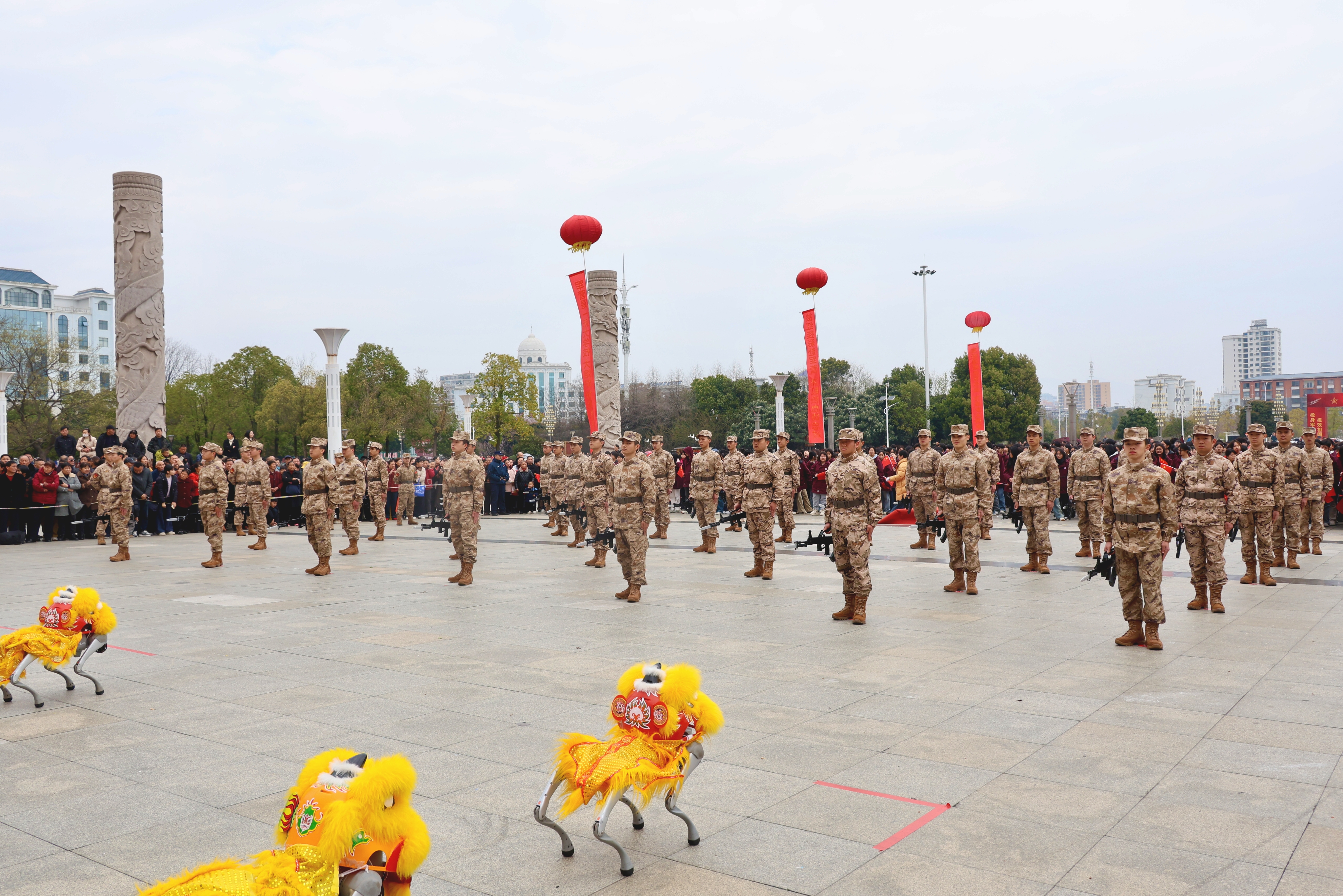 上午10时,仪式在雄壮的国歌声中拉开帷幕。王建国宣读2026年上半年新兵入伍批准命令。35名新兵身着戎装、胸戴红花,以一场气势昂扬的刺杀操表演展示役前教育训练成果,口号嘹亮、动作刚劲有力,赢得现场阵阵掌声。