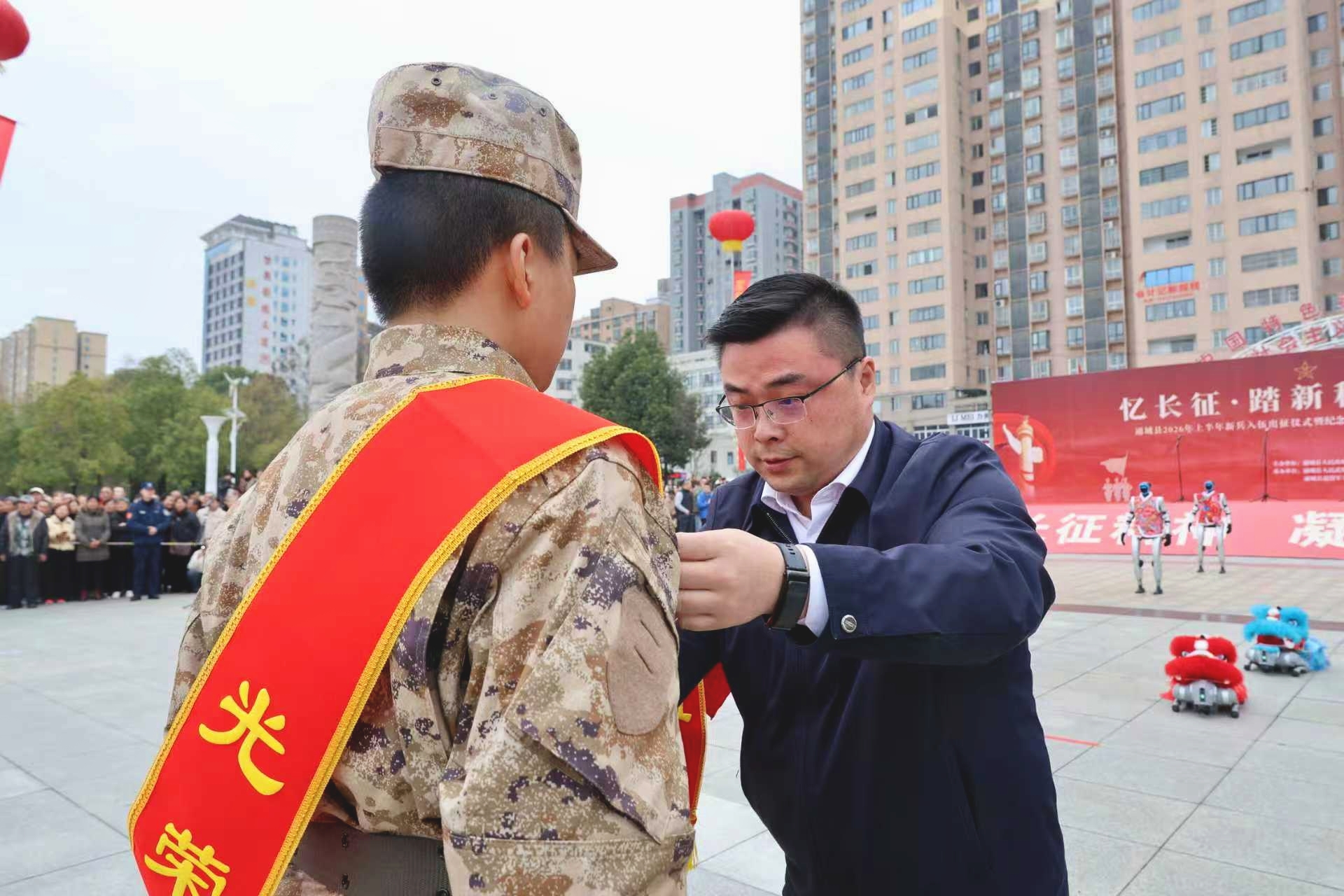 【全媒体记者 卢延超 刘祥宇 实习生 黎昇 通讯员 王石恩】3月19日上午,通城县2026年上半年新兵入伍出征仪式暨纪念长征胜利90周年全民国防教育活动在县银山广场举行。县委常委、常务副县长杨昌,县委常委、县人武部部长王建国,县人武部政委陈建参加活动,与千余名师生、群众共同为即将奔赴军营的新兵壮行。