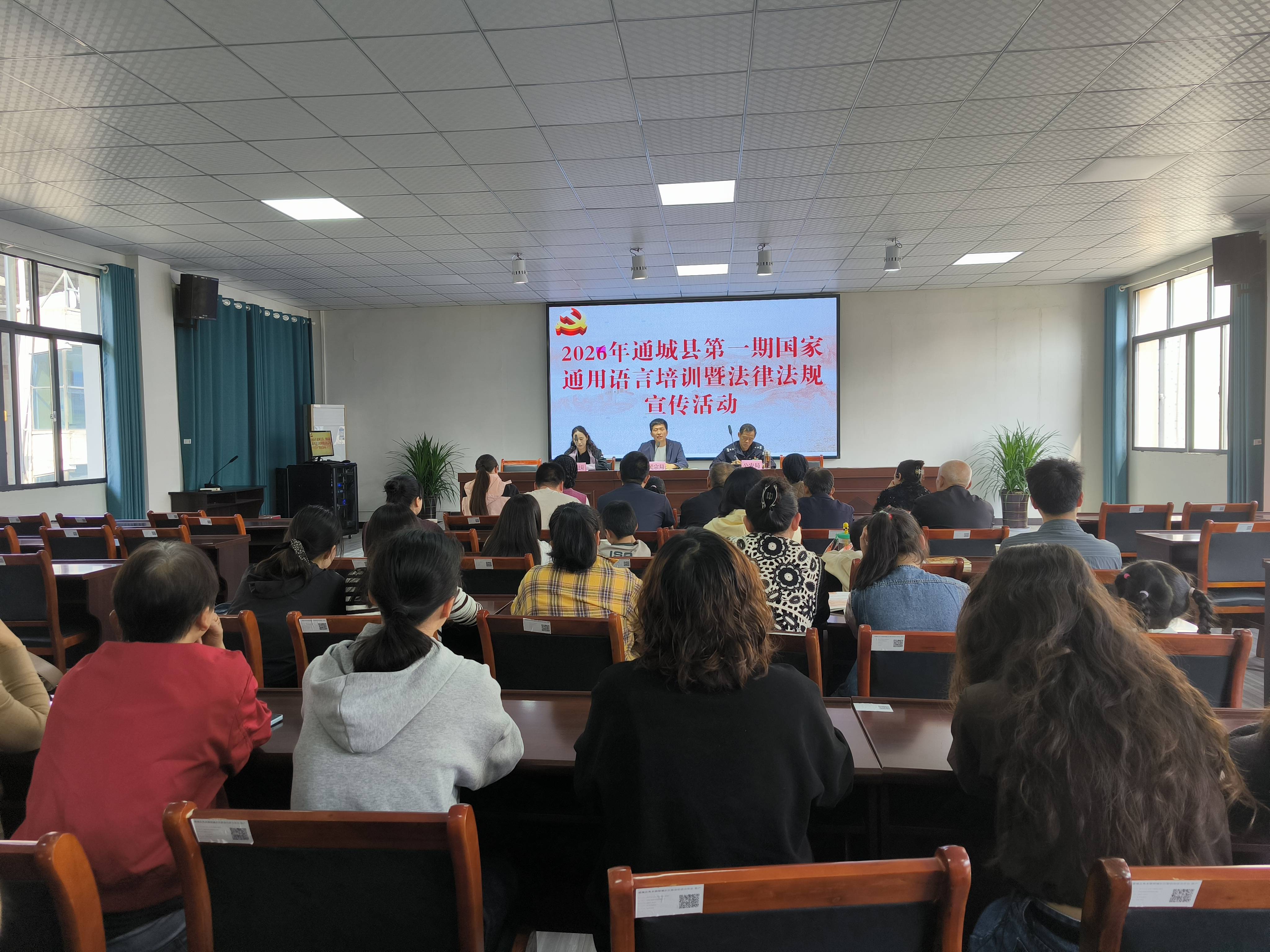 【通讯员 牟兰 万丽】为促进各族居民交往交流交融,提升辖区居民法治素养与国家通用语言应用能力,近日,通城县隽水镇银城社区“石榴籽”志愿服务队联合县民宗局、城管执法局、公安局等相关单位,共同举办2026年第一期国家通用语言培训暨法律法规宣传活动,38名各族群众齐聚一堂,参与此次培训学习。