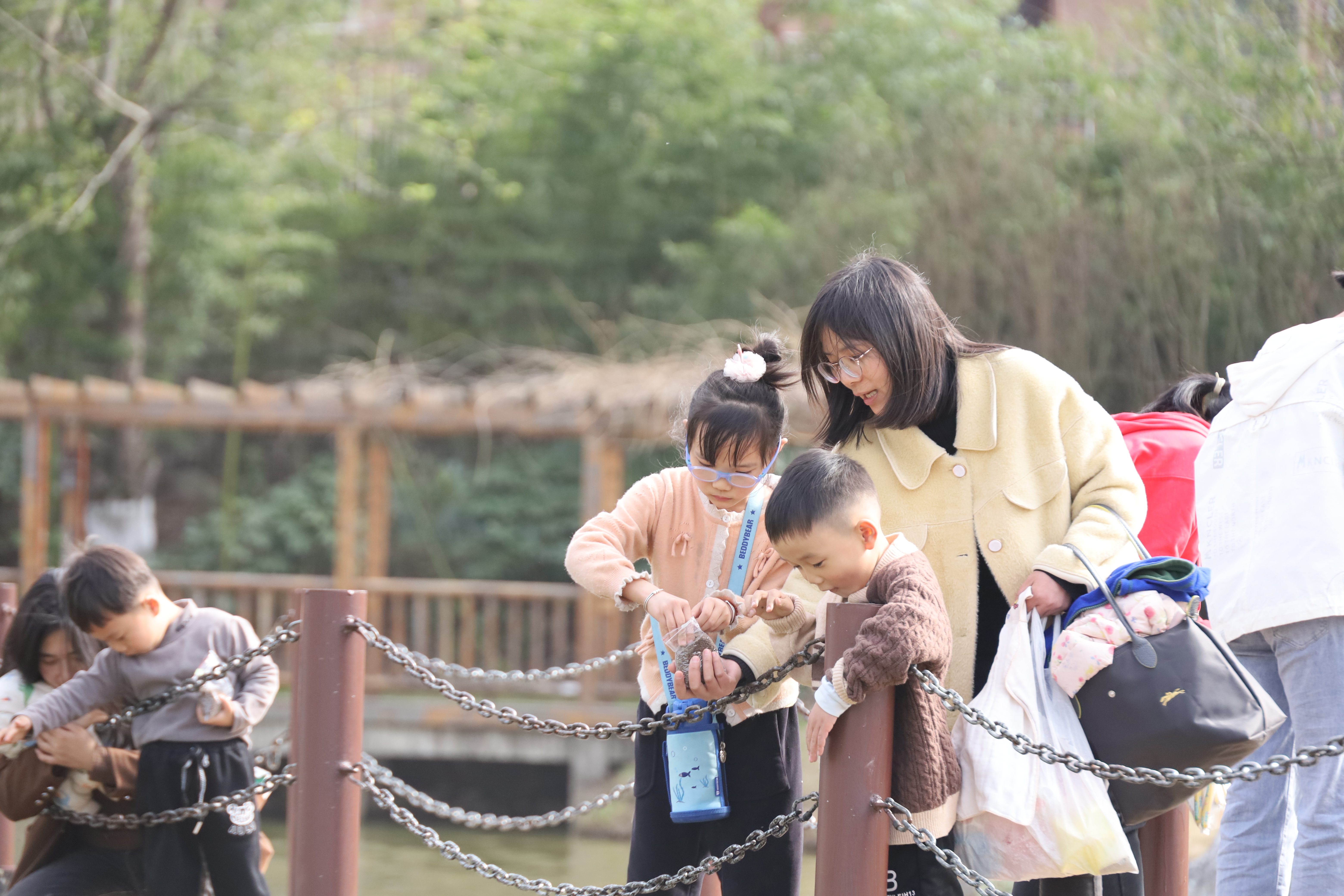 恰逢周末,在城区秀水公园里,不少市民带上亲友漫步湖边步道,观赏、喂食游鱼,感受渐浓春意,享受盈盈春光。