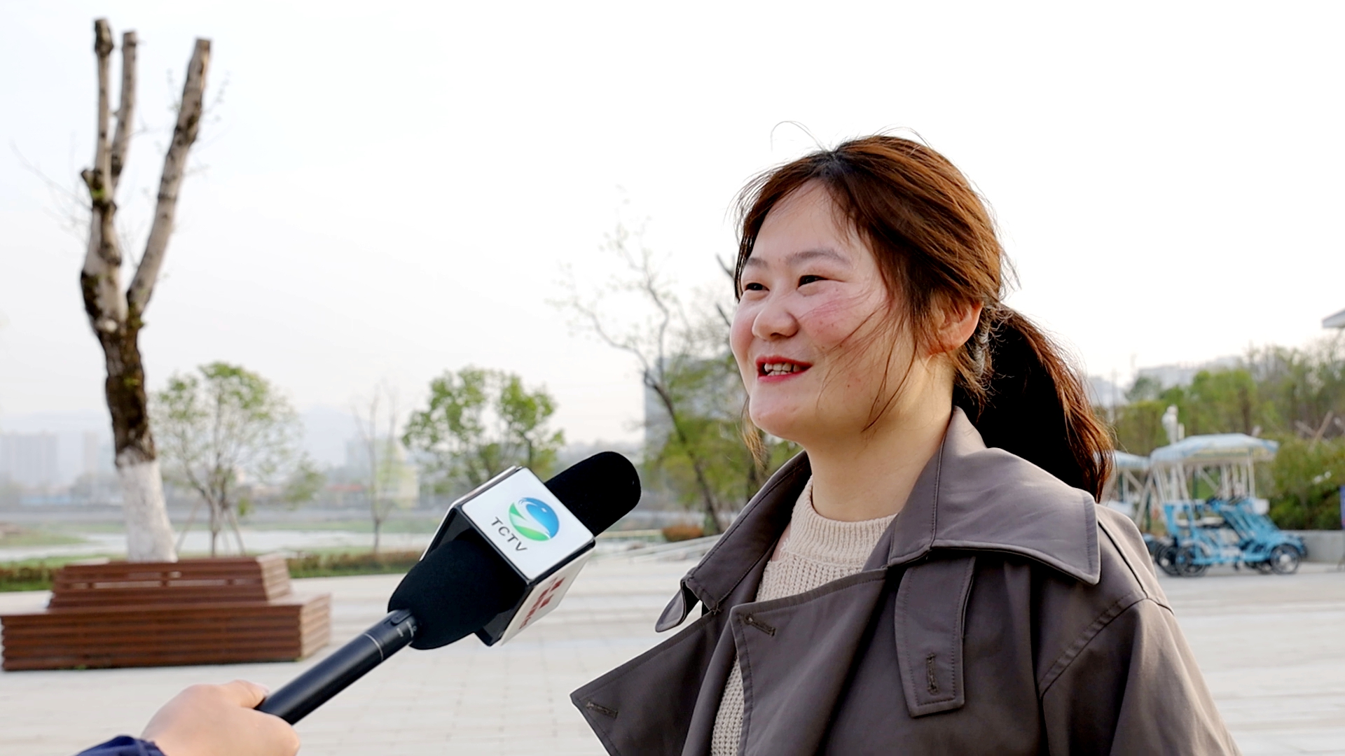 市民 吴女士:春天到了,公园里面风景宜人,景色很好。正好是周末,带小朋友玩一下,就感觉很放松。