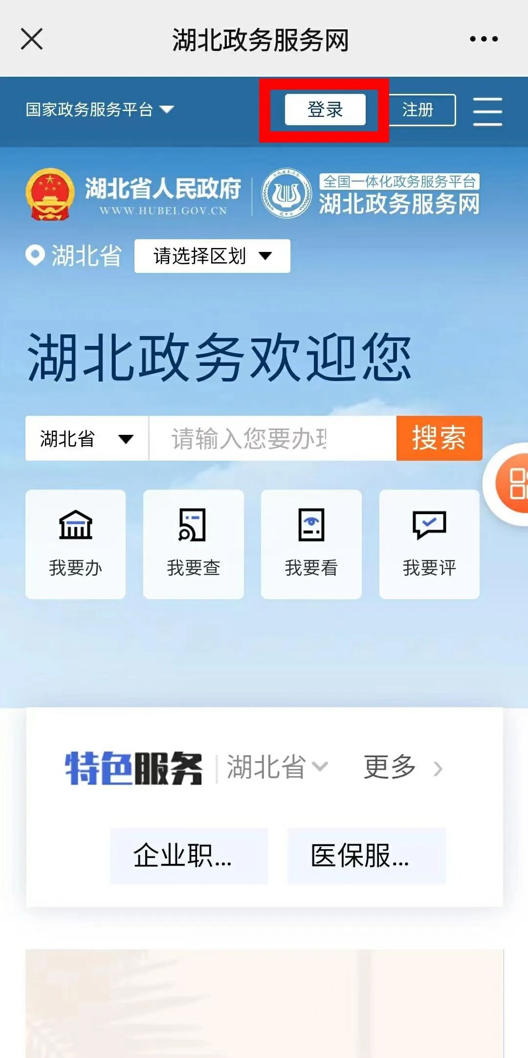 进入【鄂汇办】并进行登录
