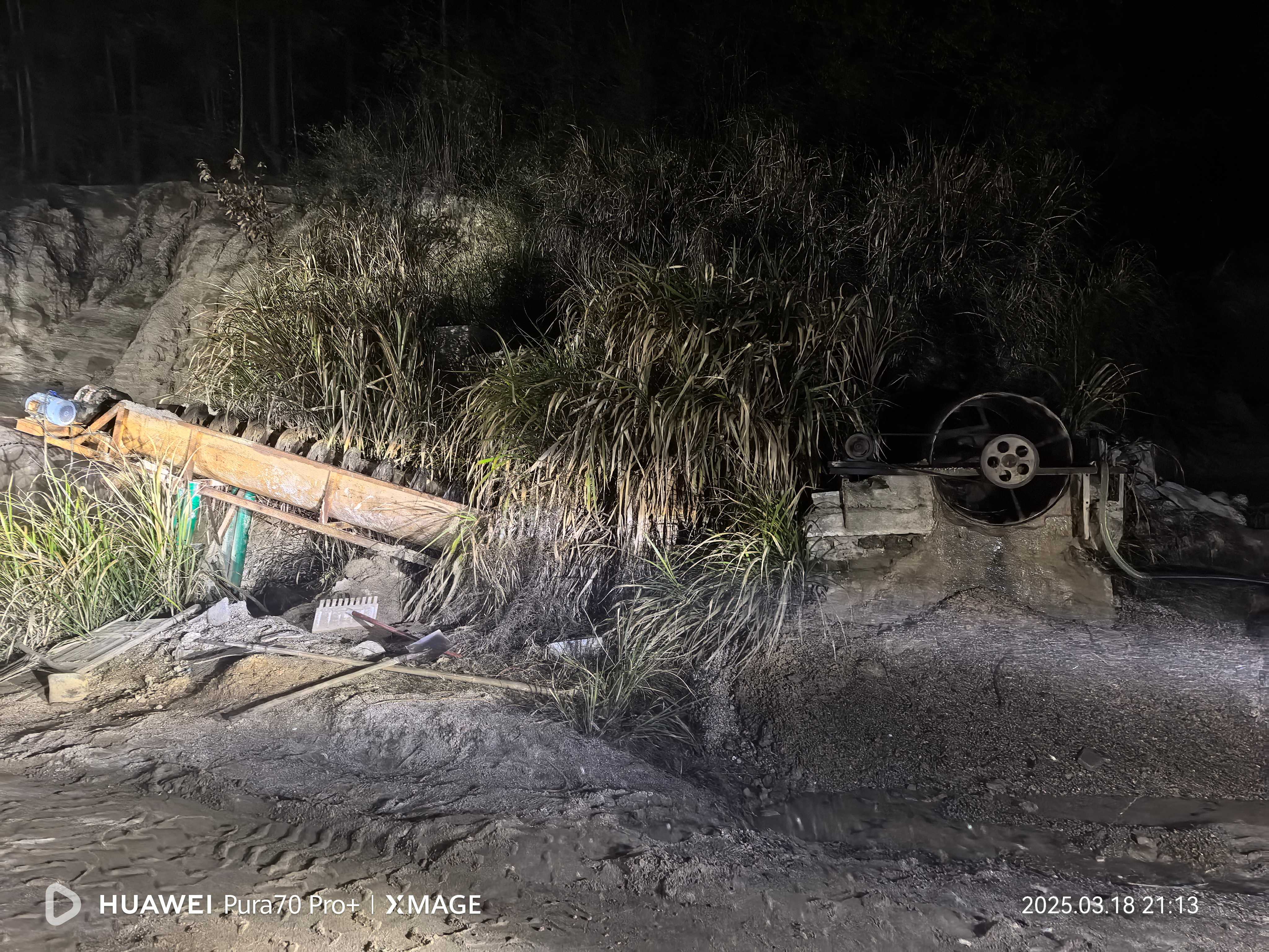 当晚九点,执法人员不顾夜色已深,立刻赶赴现场。到达庄前社区后,眼前的景象证实了群众的举报。现场一片嘈杂,一台大型机器正运作着,巨大的铲斗不断将泥沙挖到传送带上,传送带随后把泥沙送进机器中进行淘洗,四周弥漫着尘土,洗沙产生的污水未经处理直接排放,对周边环境造成了严重污染。