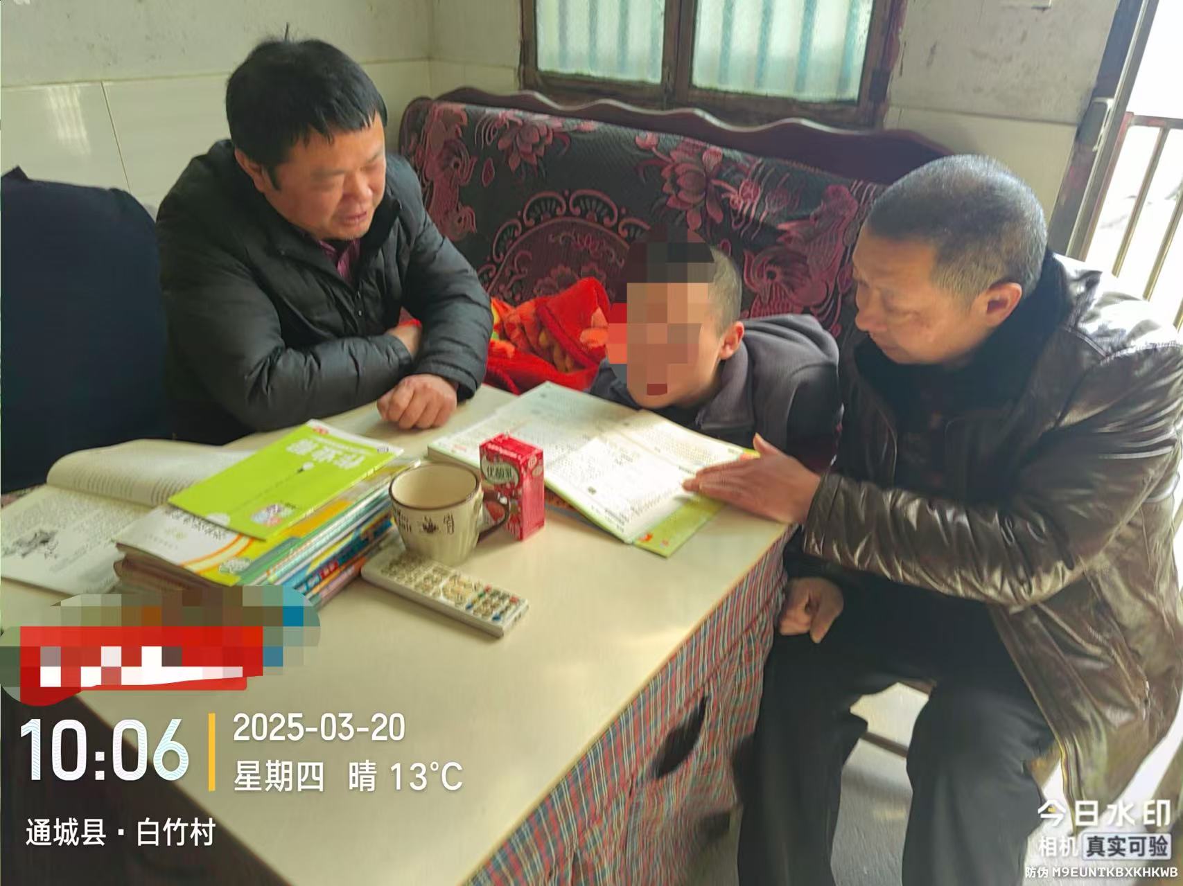 随后,老师们怀着关切前往同样病症的李同学家,李同学识字较多,状况相对较好,送教老师见状欣喜,教他朗读古诗,孩子认真跟读,笑容灿烂。接着,他们带着慰问物资,沿着蜿蜒山路又走访了杨同学和王同学家,送教时不仅传授知识,更注重情感交流,引导孩子树立积极人生观,也鼓励家长乐观面对,全程参与孩子教育。